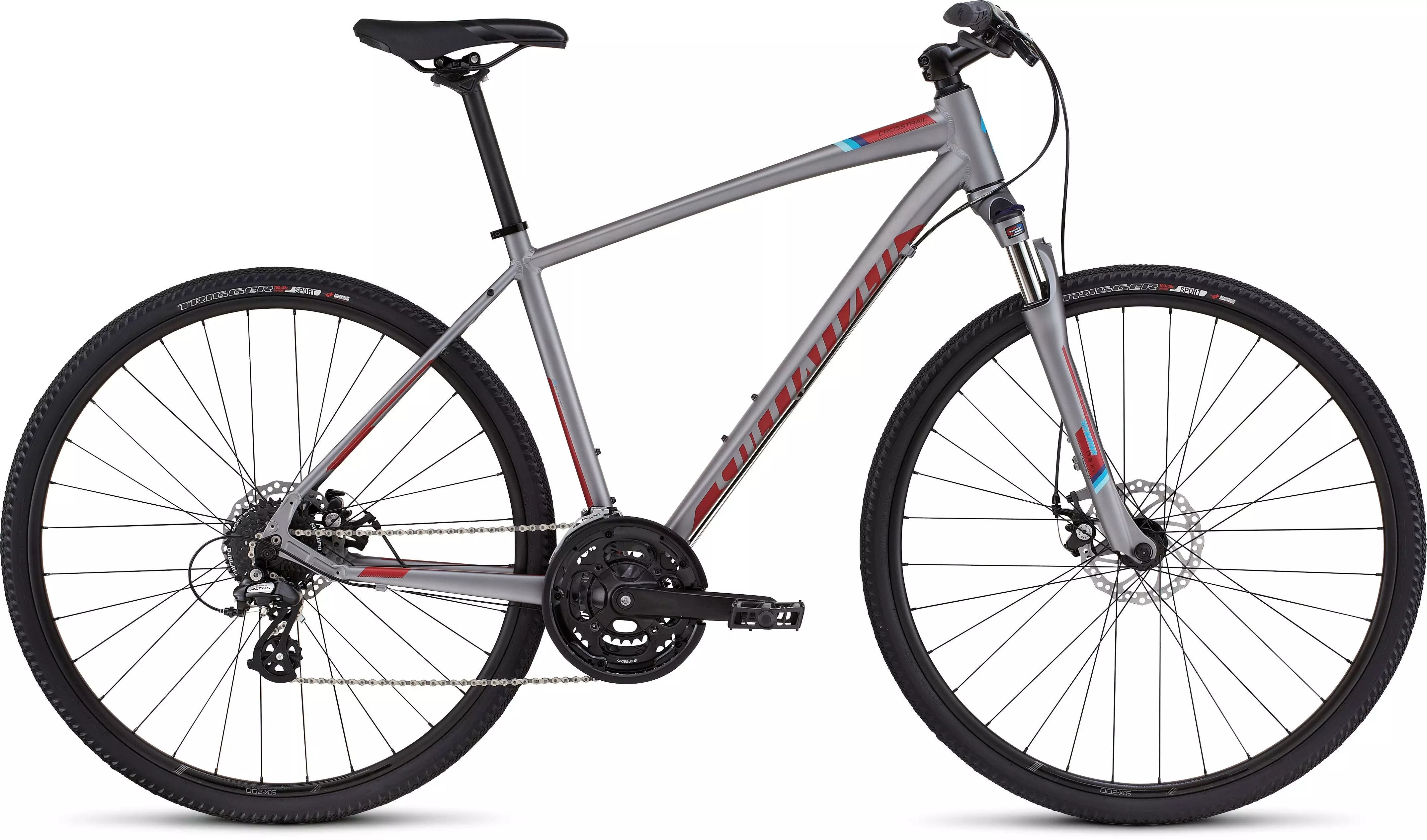 When you're at the gym, you use equipment that works for you. Likewise, you need a bike that performs exactly how you need it to—versatile, comfortable, and efficient. That's why our Crosstrail Disc comes equipped with a custom suspension fork with a lockout feature for fast and efficient use over any surface. To build on this blend of comfort and speed, the frame is built from lightweight A1 Premium aluminium tubing with a geometry that's made to fit just right from the minute you get on the bike. Add in a selection of strong, no-fuss components, reliable mechnical disc brakes, and rack/fender mounts, and you get a bike that's ready to roll wherever you choose to take it.