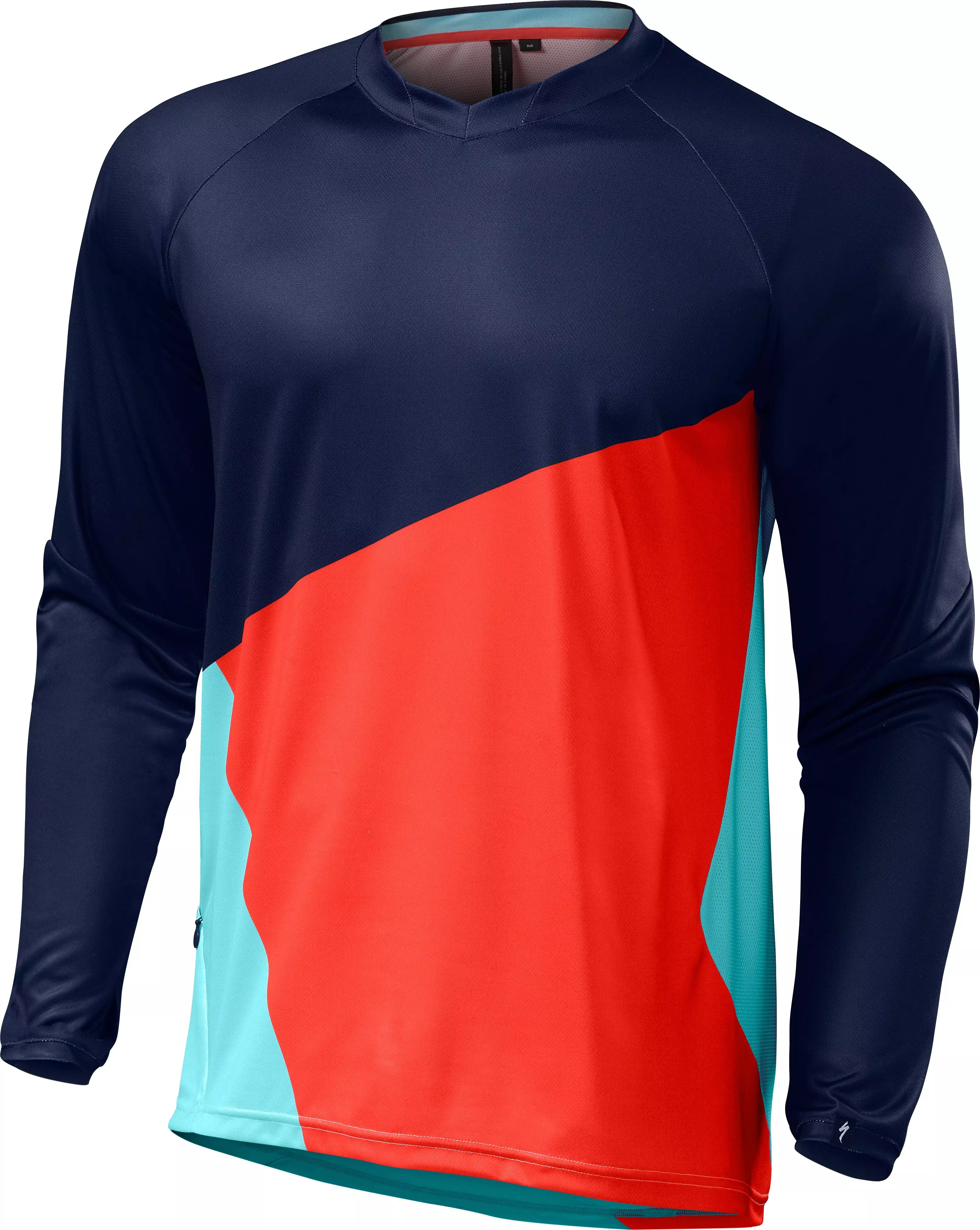 If you're tackling the trail with the throttle wide open, you're bound to take a few spills—sorry, it's just a fact of life. This, however, doesn't mean that your clothes need to be made out of stuffy, military-grade canvas. Not satisfied with most of the offerings out there for gravity riders, we sought to find the happy medium with our Demo Pro Long Sleeve Jersey. It's made from our venerable VaporRize™ fabrics, only we used a knit construction for this jersey, due to its strength and durability. This way, you won't find yourself back here searching for a new jersey every time you take a tumble over the weekend. But just as importantly, this fabric selection combines the aforementioned strength with breathability and moisture management, so you won't feel clammy and hot while you're riding. We also included a zippered side pocket to carry your small items, like a phone or, say, your lift pass. And as you were probably wondering, this jersey features our High Volume Mountain Bike Fit, so it's purposefully designed to be loose, airy, and to have plenty of room for pads and body armor.
