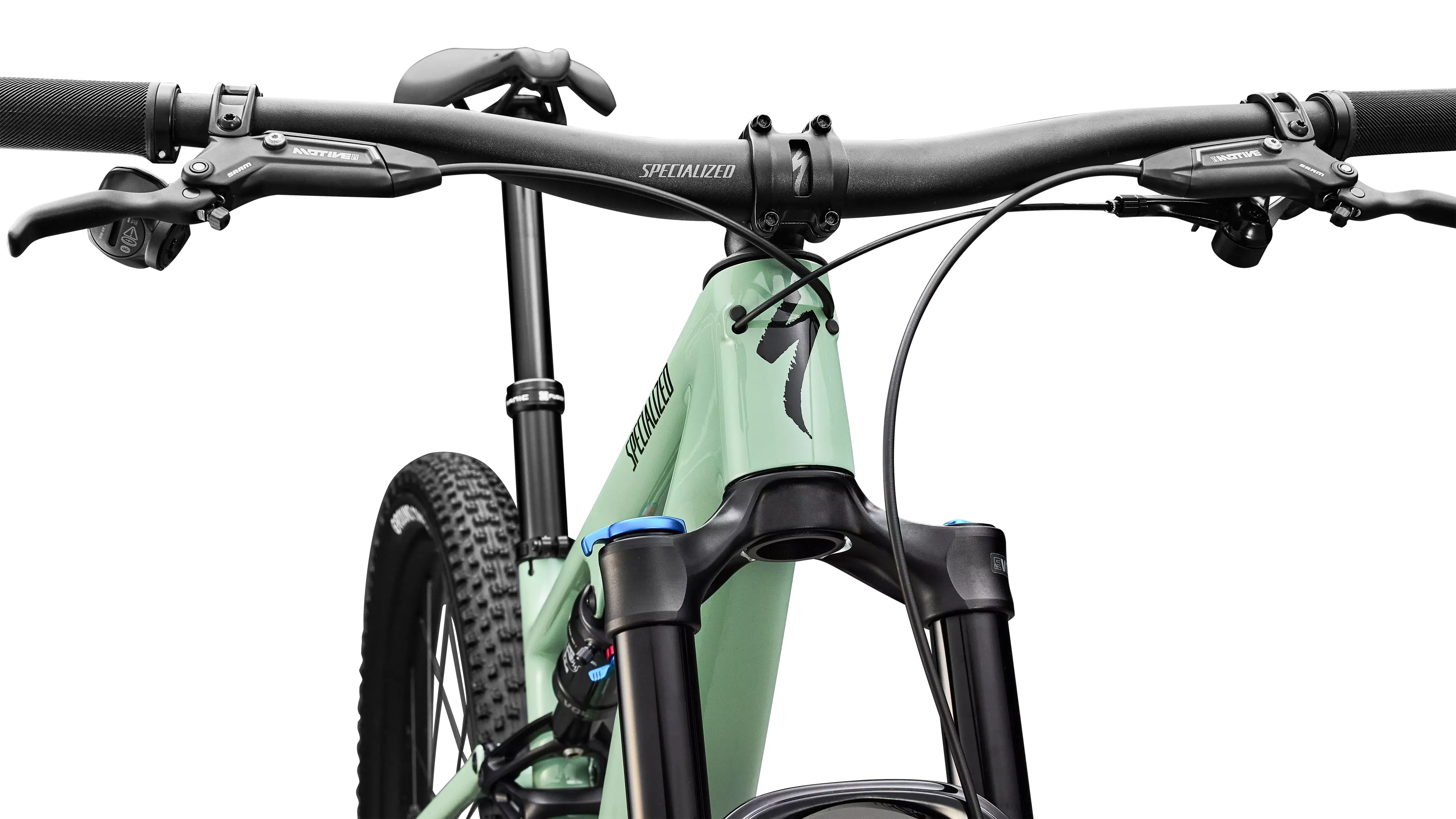 SRAM’s legendary full-powered Code Motive Bronze brakes make for a sleek cockpit and easy adjustments