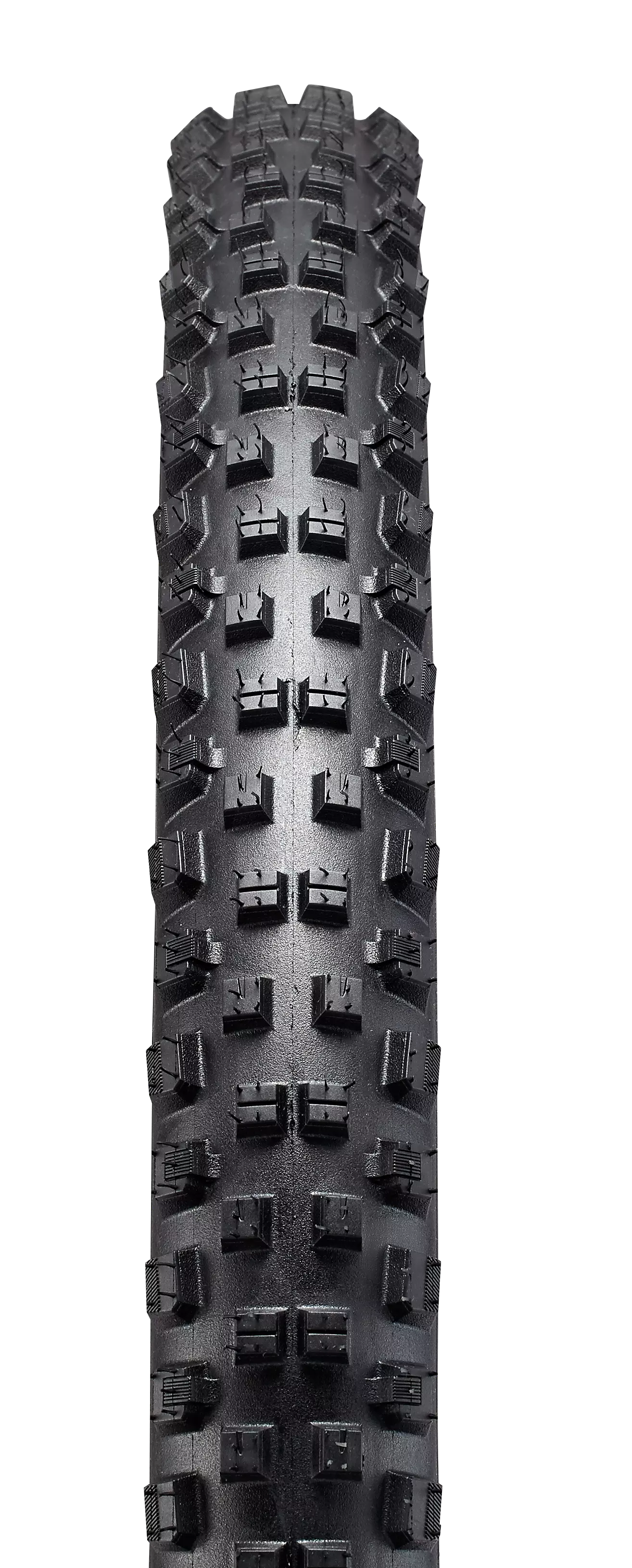 The new mountain bike tire tread pattern features an aggressive tread with deep center knobs and high-volume shoulder blocks to bite through loose soil when cornering. Block-in-block transition knobs reinforce the tire structure, aid traction, and lower rolling resistance, from plowing deep loam to railing rock slabs and charging over slippery roots.