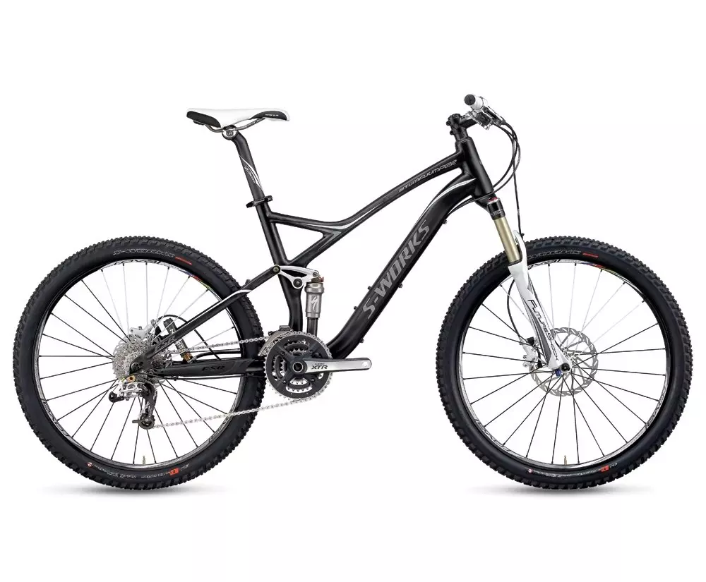 S-Works Stumpjumper FSR FACT 10m carbon main triangle, Az1 construction, M5 alloy chainstays with Brain mount, FACT 10m carbon seatstays with carbon drive side dropout, DMD Direct Mount F.Der, full cartridge bearing pivots, 120mm travel