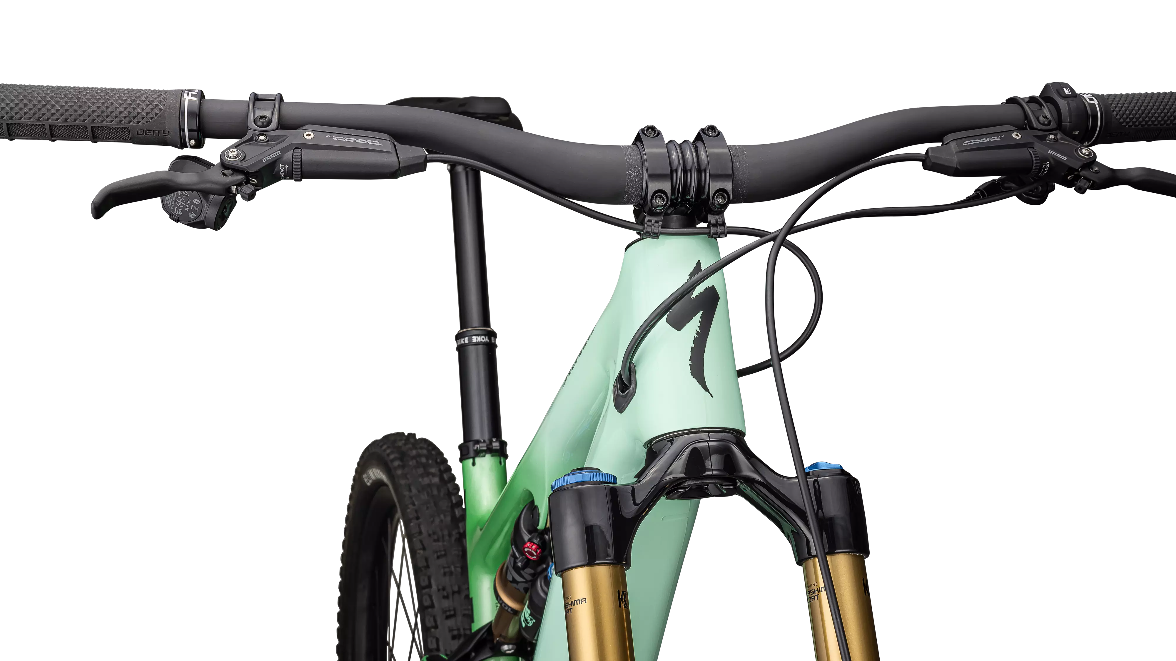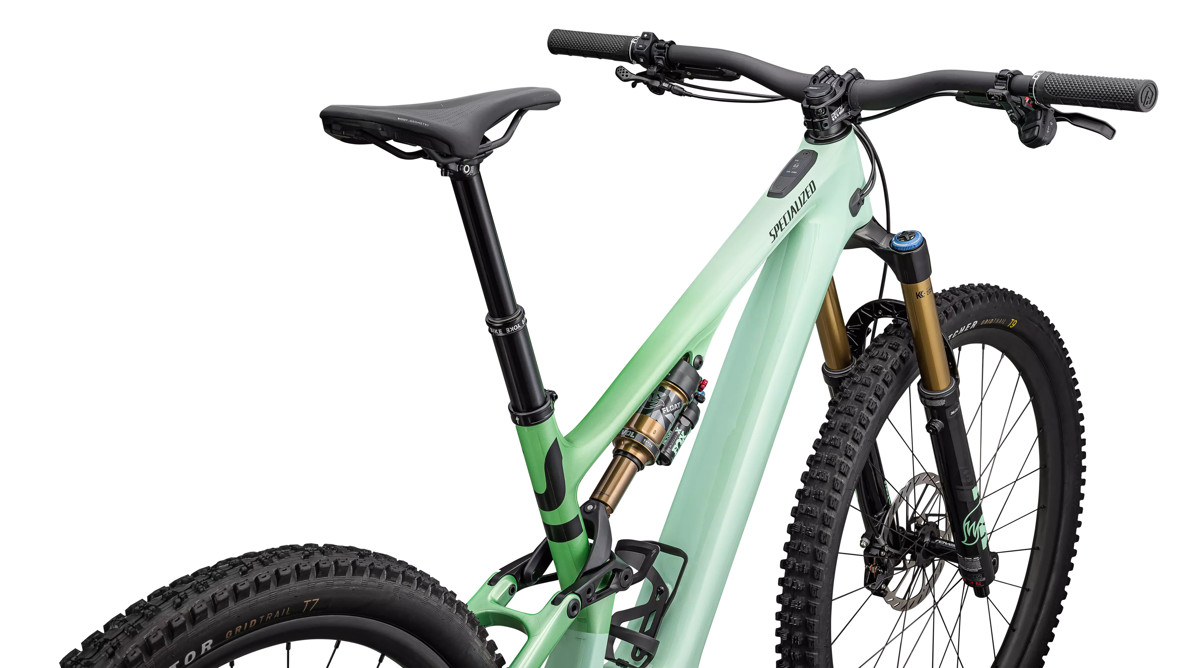 GEOMETRY OF CONTROL — The cockpit centers you in the bike, optimizing traction and corner control. The low bottom bracket, slack headtube angle, and reduced fork offset keep things stable in the rough while giving you the freedom to destroy the turns. The head angle can be personalized to, 63, 64.25, and 65.5 degrees.