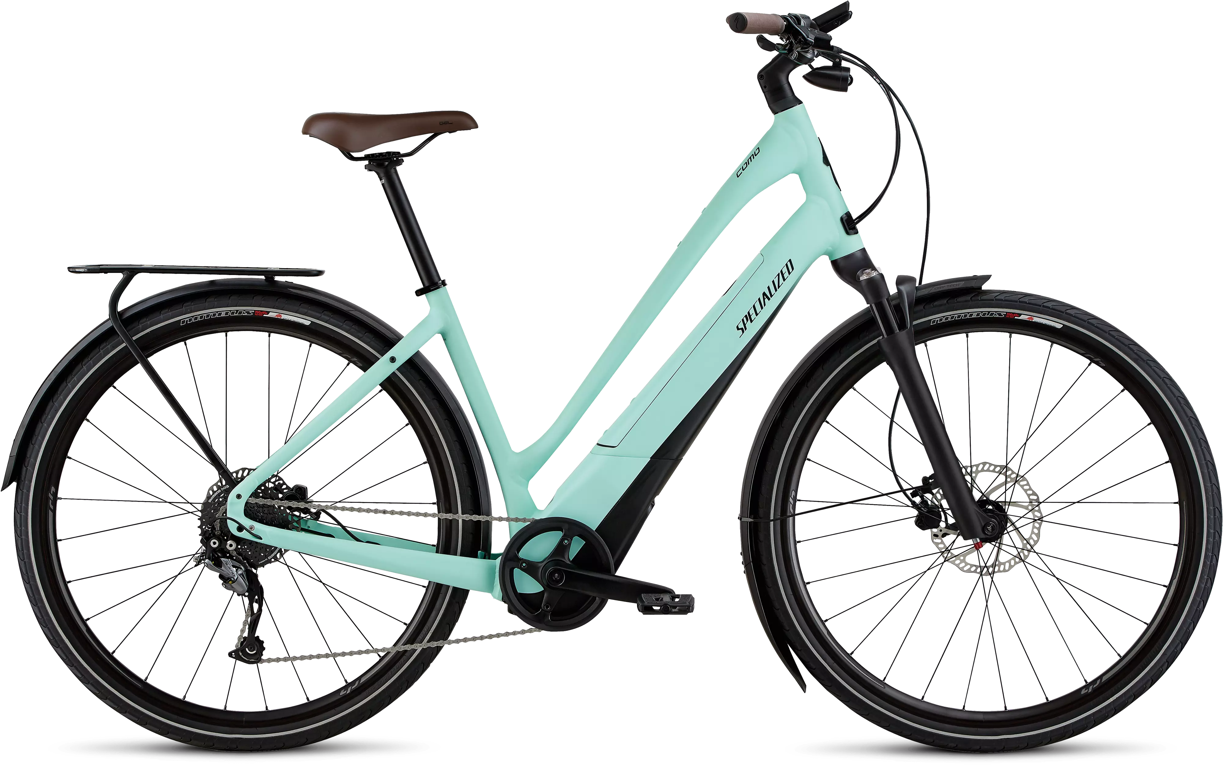 La Como también cuenta con geometría Ground Control que facilita el poner un pie a tierra y el subir y bajar de la bicicleta, cambio Shimano de 9 velocidades, potentes frenos de disco hidráulicos, racks, guardabarros y luces integradas en la parte delantera y trasera.