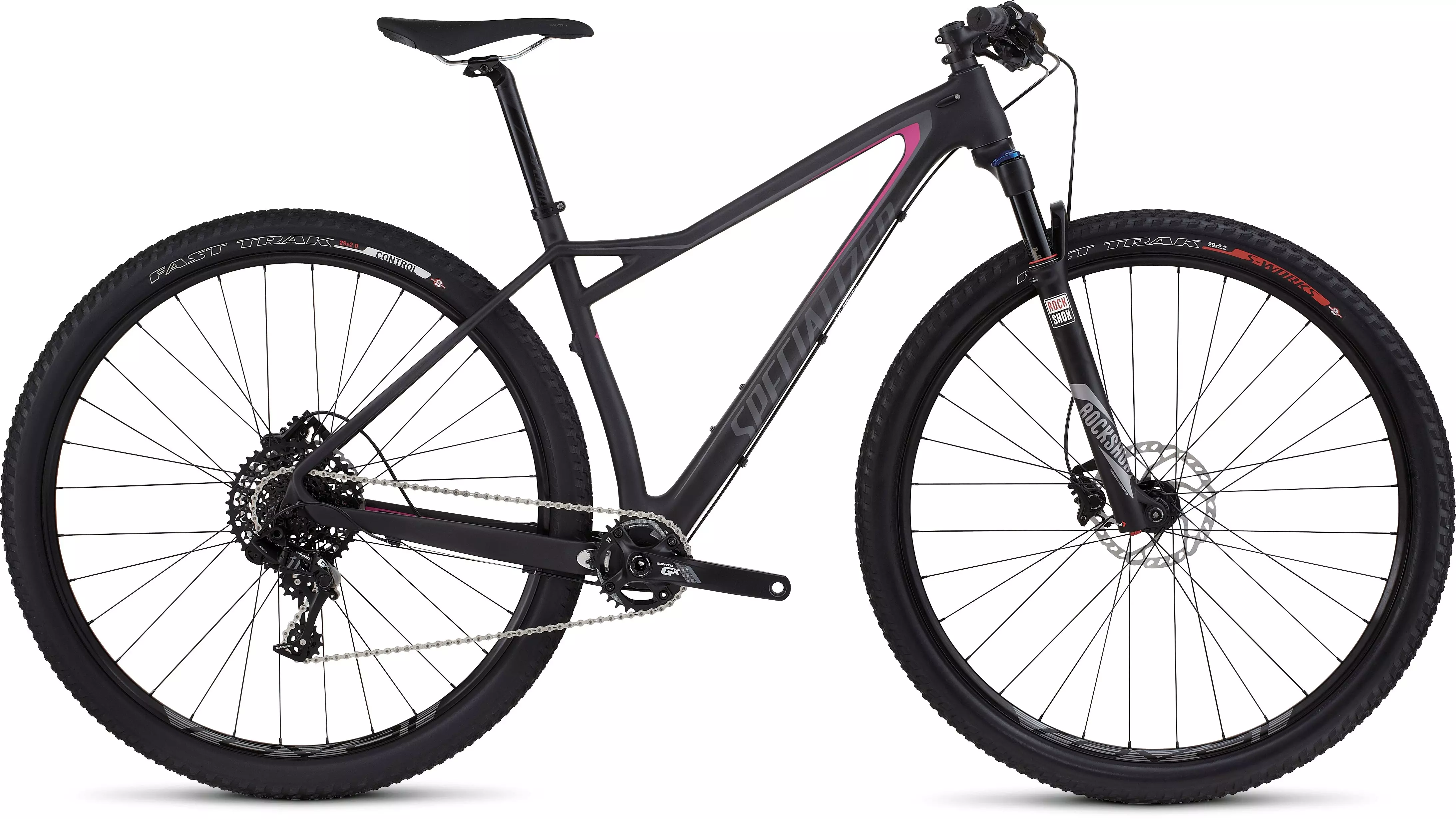FACT 8M carbon, Women's Competitive XC 29 Geometry, women's carbon layup, tapered head tube, carbon PF30 BB, internal cable routing, hollow carbon dropouts, replaceable alloy derailleur hanger