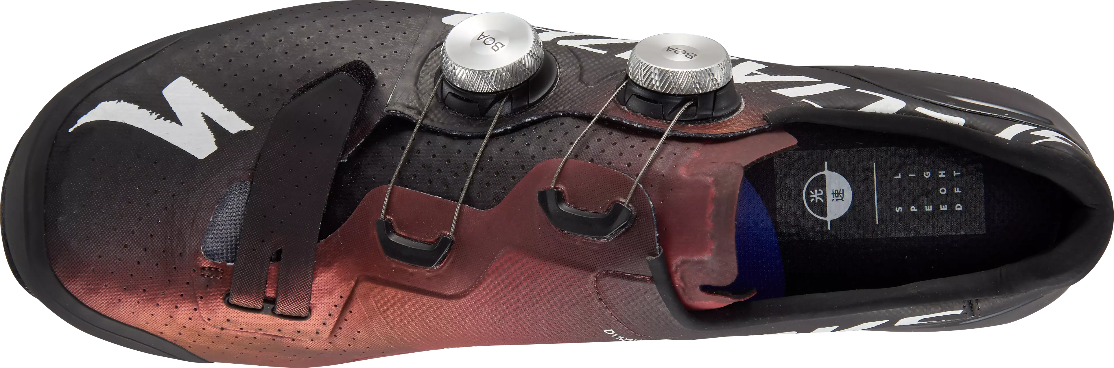 We took a no-holds-barred approach to transferring every bit of your power to the pedals. The sole utilizes a rubber toe and heel for superior off-the-bike traction, while the pontoons are made of a harder TPU to provide excellent stability and power transfer to the pedal. A completely refined Padlock™ Heel, meanwhile, packs in more comfort with the same exceptional heel hold that you found in the previous iteration. And finally, the space-grade Dyneema™ material used in the upper doesn't stretch when pulled on, making sure that your foot stays where it's supposed to. With all of these features combined, you can be sure that we've kept in line with the motto "every watt is sacred."