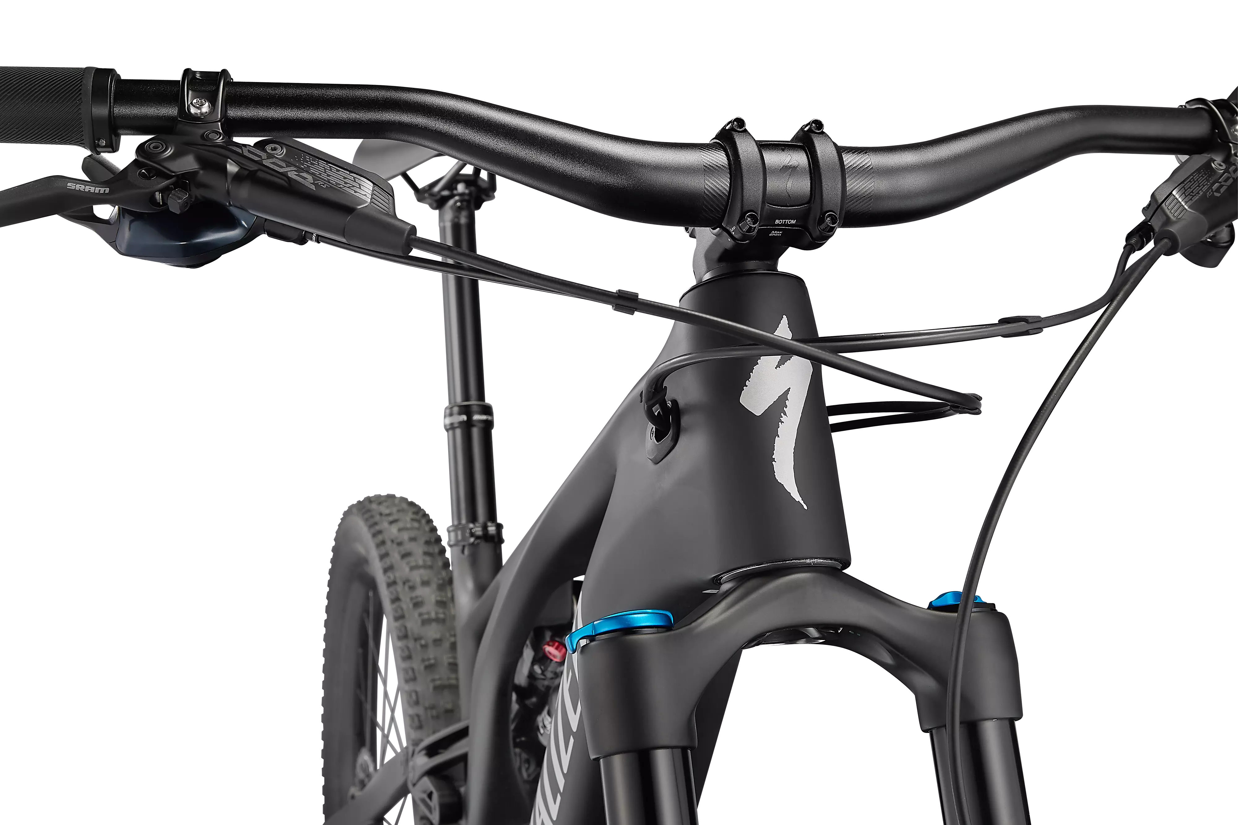 La Turbo Levo ofrece seis configuraciones de geometría que permiten un fácil ajuste para adaptarse a tu estilo y perfeccionar el rendimiento en cualquier terreno. El ángulo de dirección se puede ajustar entre 63 y 65,5 grados. La altura del pedalier se puede también ajustar hacia arriba o hacia abajo en 7 mm.