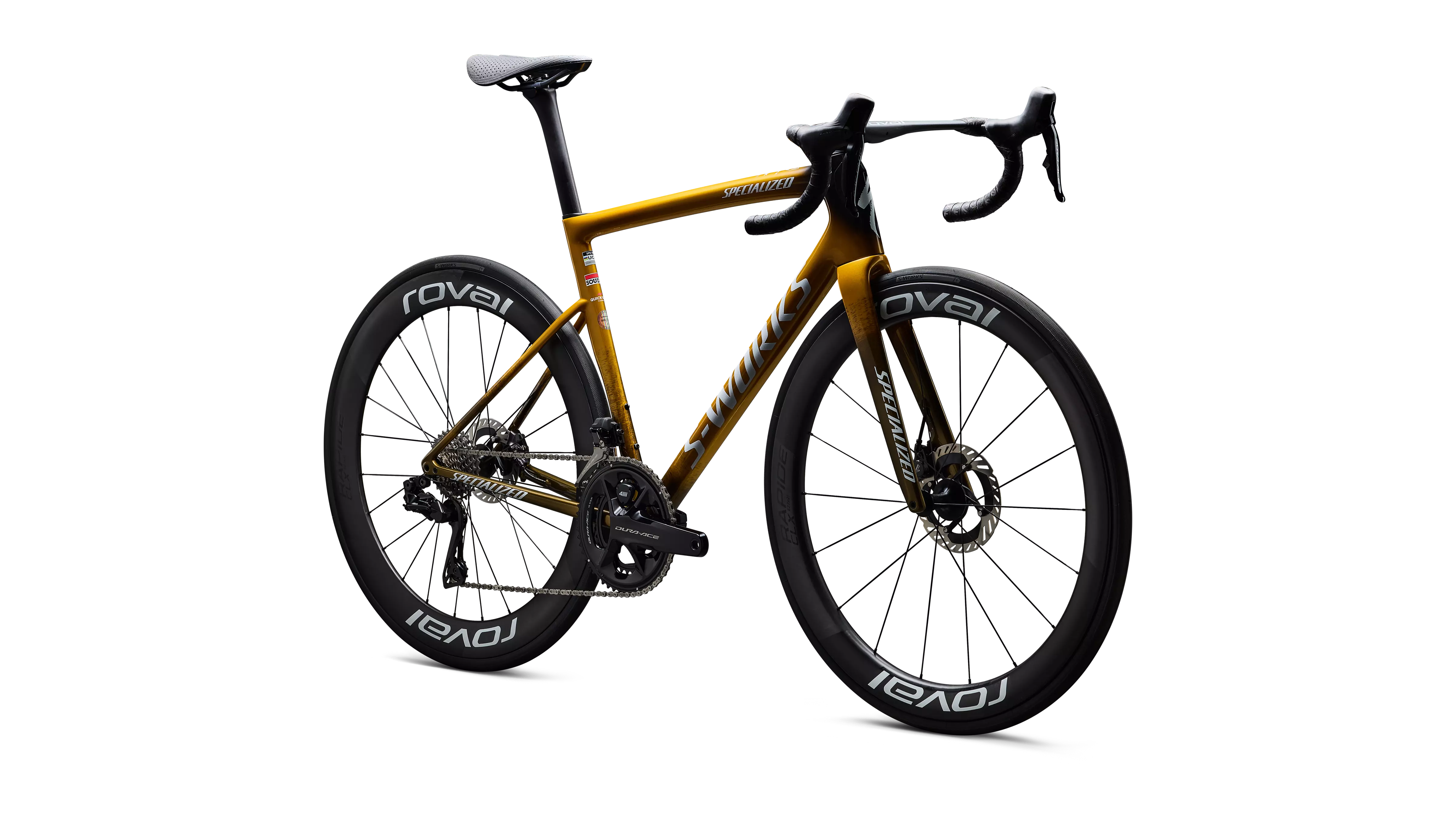 As Specialized celebrated its golden anniversary in 2024, Remco Evenepoel celebrated a history-making season proving he’s the World’s Fastest Man. To honor the moment, we dressed Remco's 'Made in Racing' S-Works Tarmac SL8 in stunning gold, built to exact team spec: Roval Rapide cockpit, Rapide CLX II wheels, S-Works Power Mirror Saddle. Only Remco and 272 lucky riders will ever get their hands on this limited edition. Truly ‘One Bike to Rule Them All’.