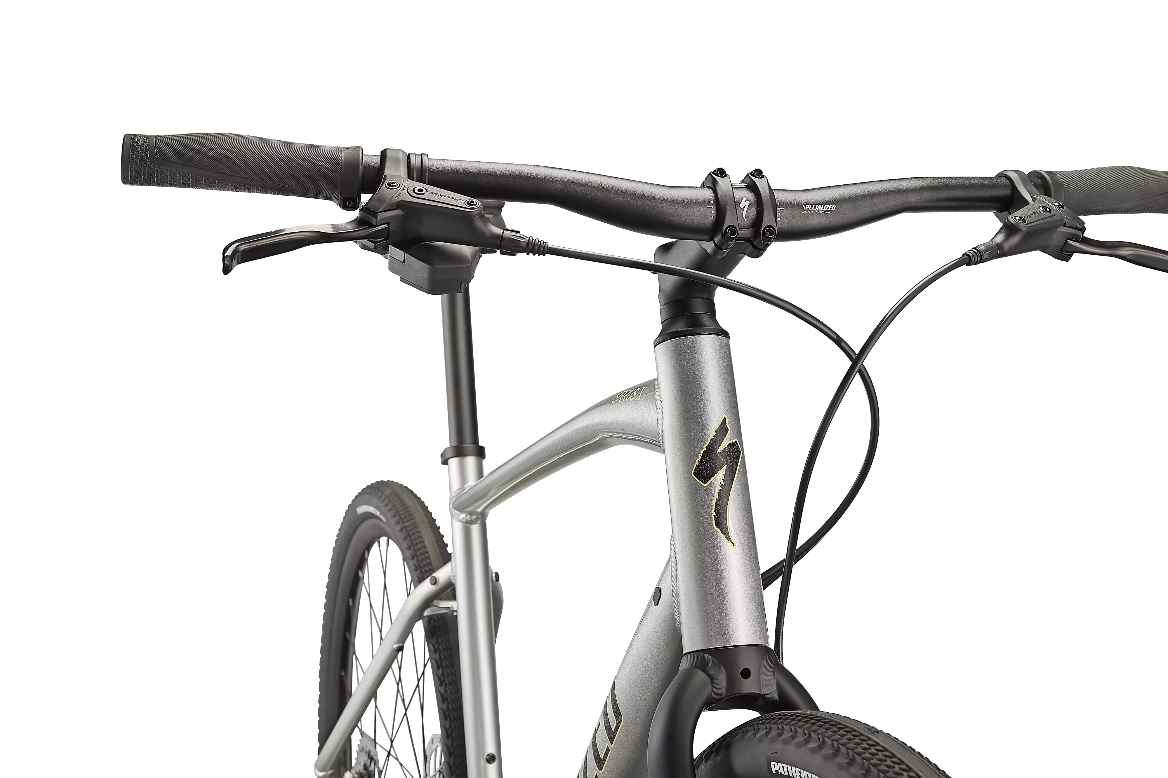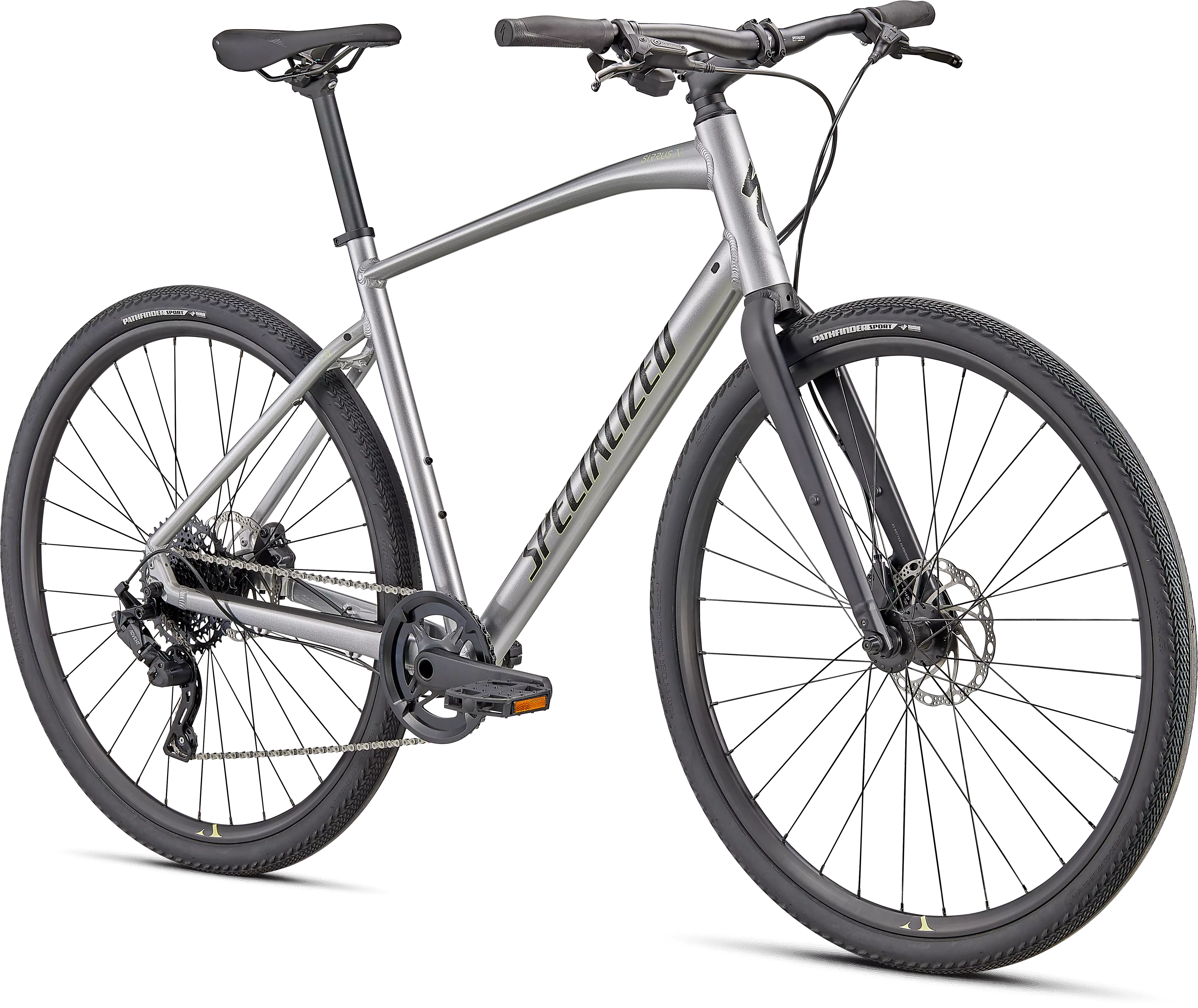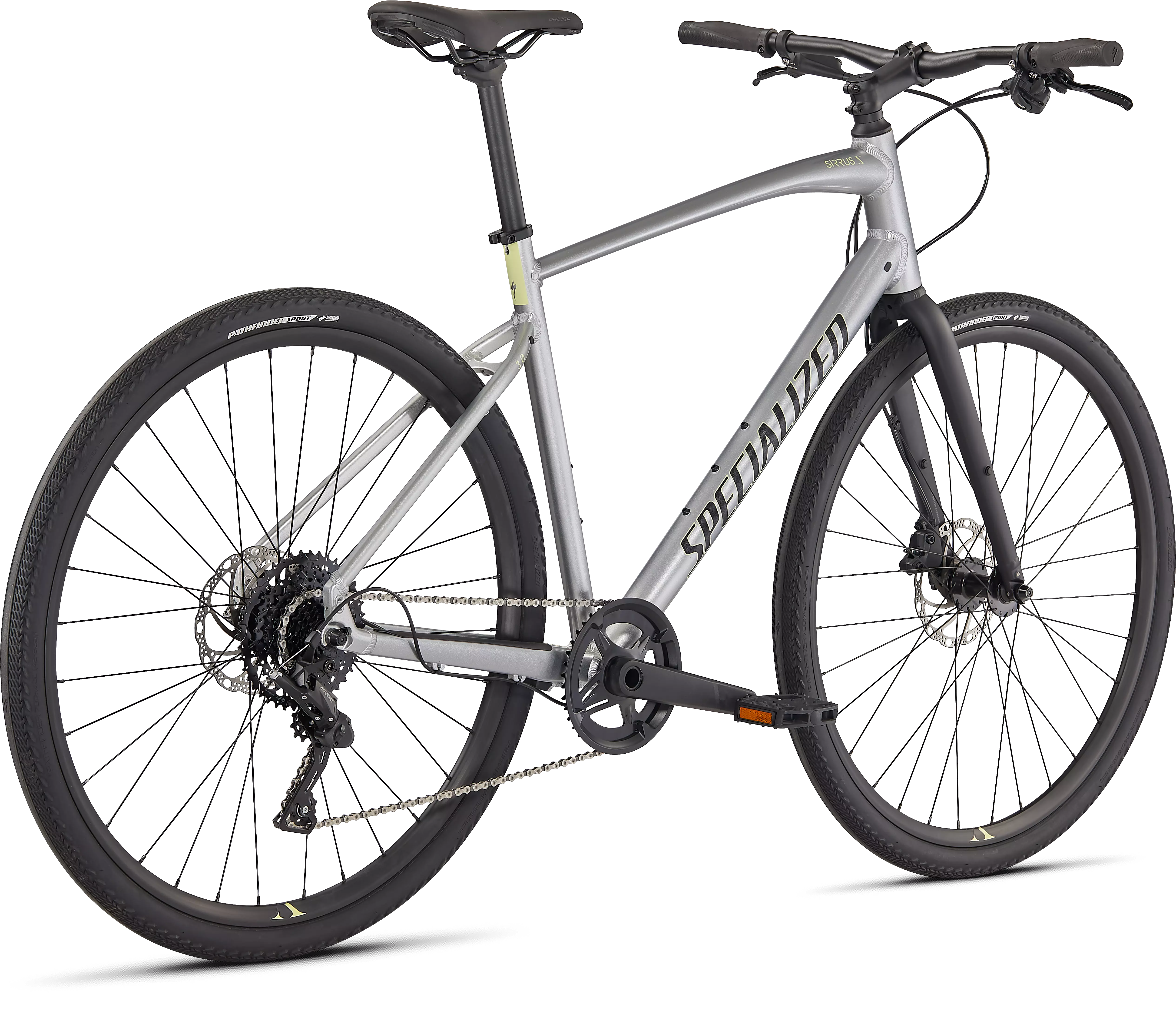 Specialized A1 Premium Aluminum, Fitness Geometry, butted tubing, internal cable routing, flat-mount disc, quick-release, Plug + Play rack/fender mounts
