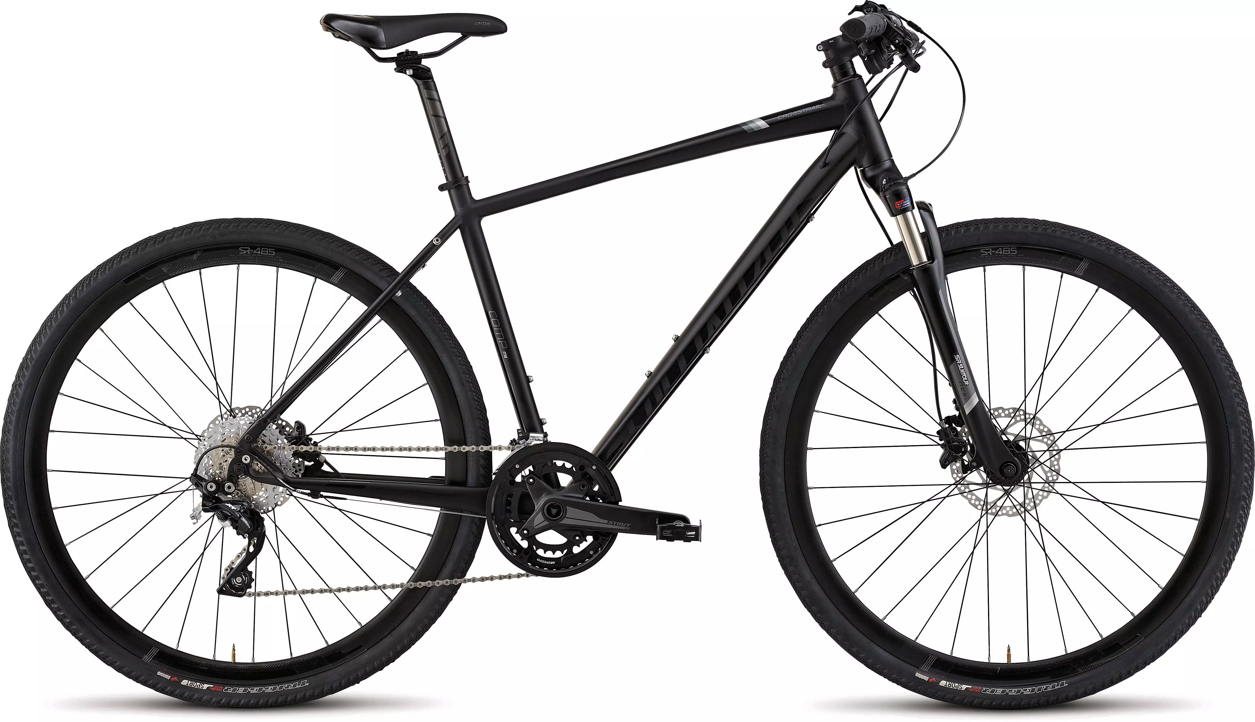 Roll out of your front door for after work and weekend adventures on the lightweight M4 aluminium Crosstrail Comp Disc, featuring reliable components like the 50mm-travel fork with remote hydraulic lockout and Multi-Circuit Damping, Shimano hydraulic disc brakes, and Shimano XT/SLX drivetrain with Specialized Stout SL crankset.
