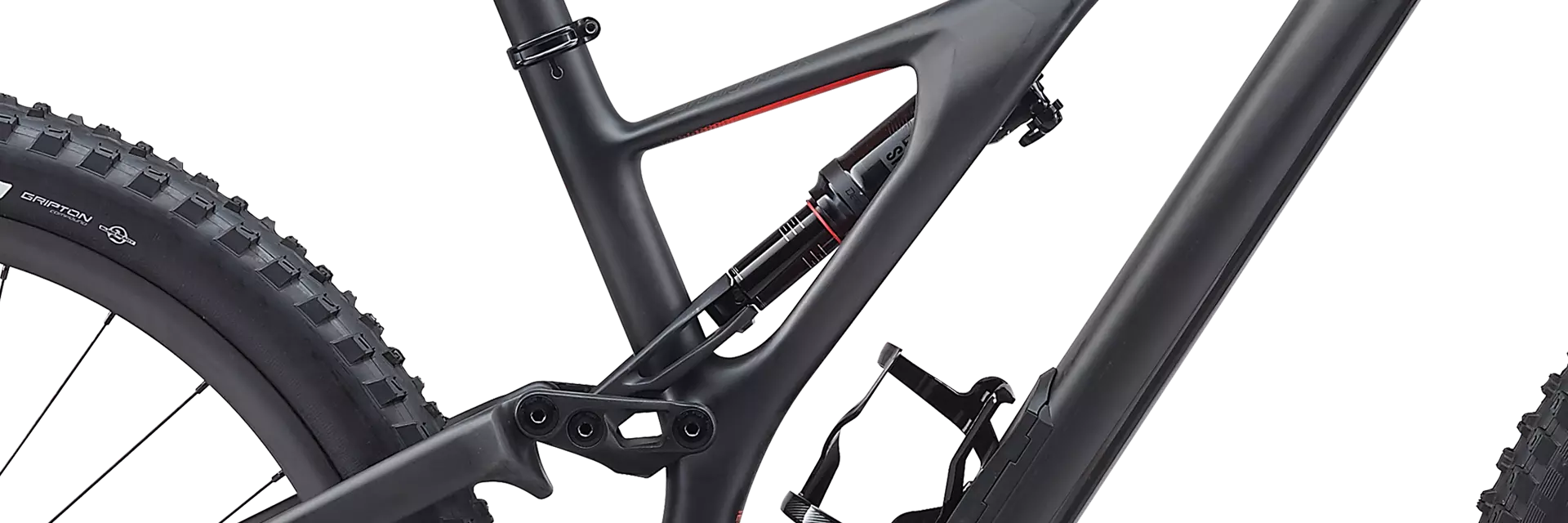 Steps were also taken to make this bike easy to live with. Threaded bottom brackets make a triumphant return, and we made room for up to a 2.6" tire. You're also free to run whatever aftermarket rear shock you want, since we're using standard metric shocks. We revamped the SWAT™ box, too, making it sleeker, lighter, and with more volume. And customization is furthered with a Flip Chip that lets you to dial-in your Stumpy to your riding style. Switch it from High to Low and it drops your bottom bracket 6mm and slackens the head tube by half-a-degree. Little details also jump out to surprise you, like a newly designed ribbed chainstay protector that makes chain slap a thing of the past and nearly silences the drivetrain. Lastly, we seriously couldn't make cable routing any easier on carbon models. Full tubes can be found throughout the carbon frame, so all you have to do is push the cable and it'll come out the other end. No more lazy loop, hidden stashes of magnets, pokey spokes, or pillows to cry in.