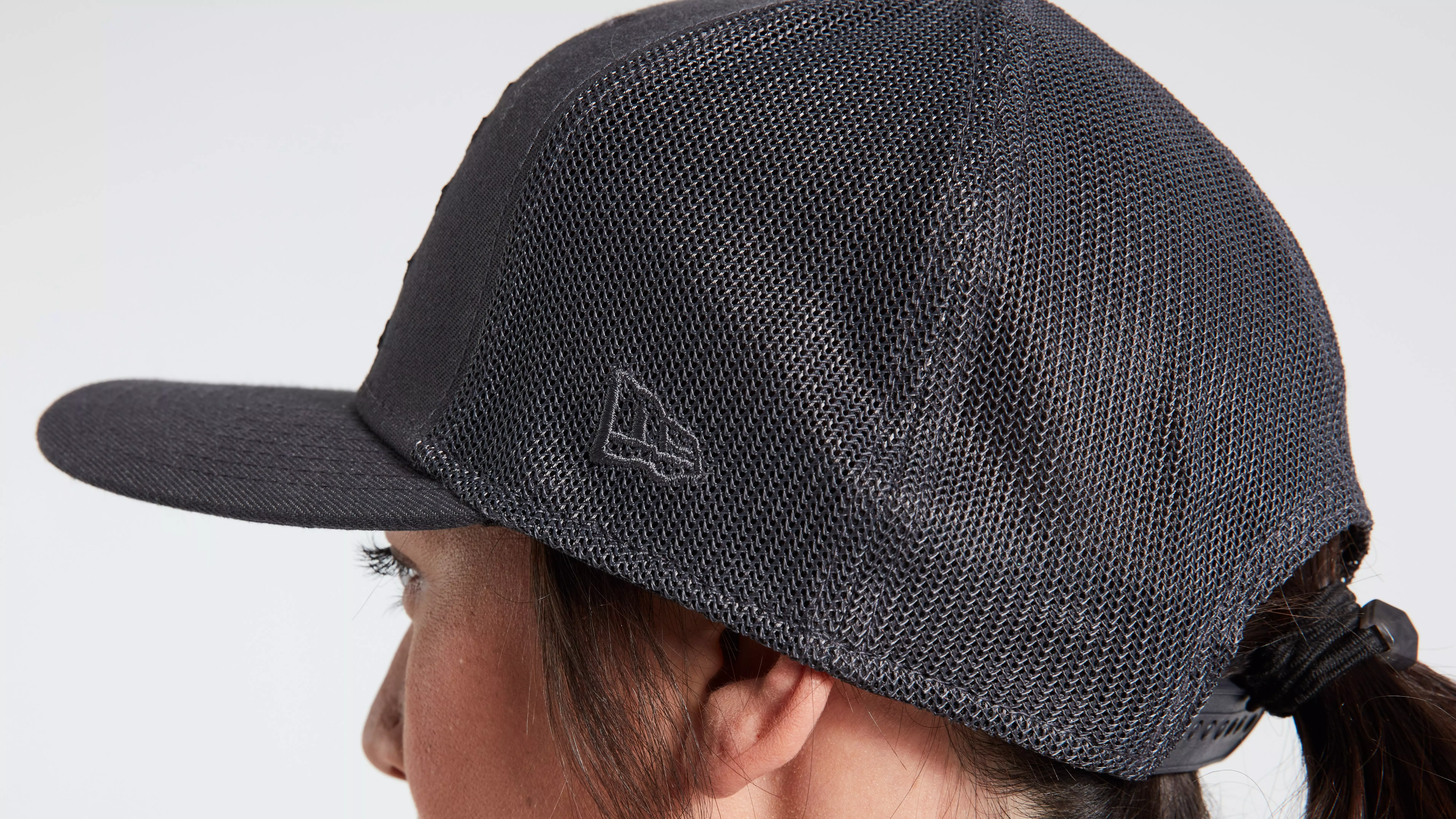 Mesh construction is paired with a woven front panel.