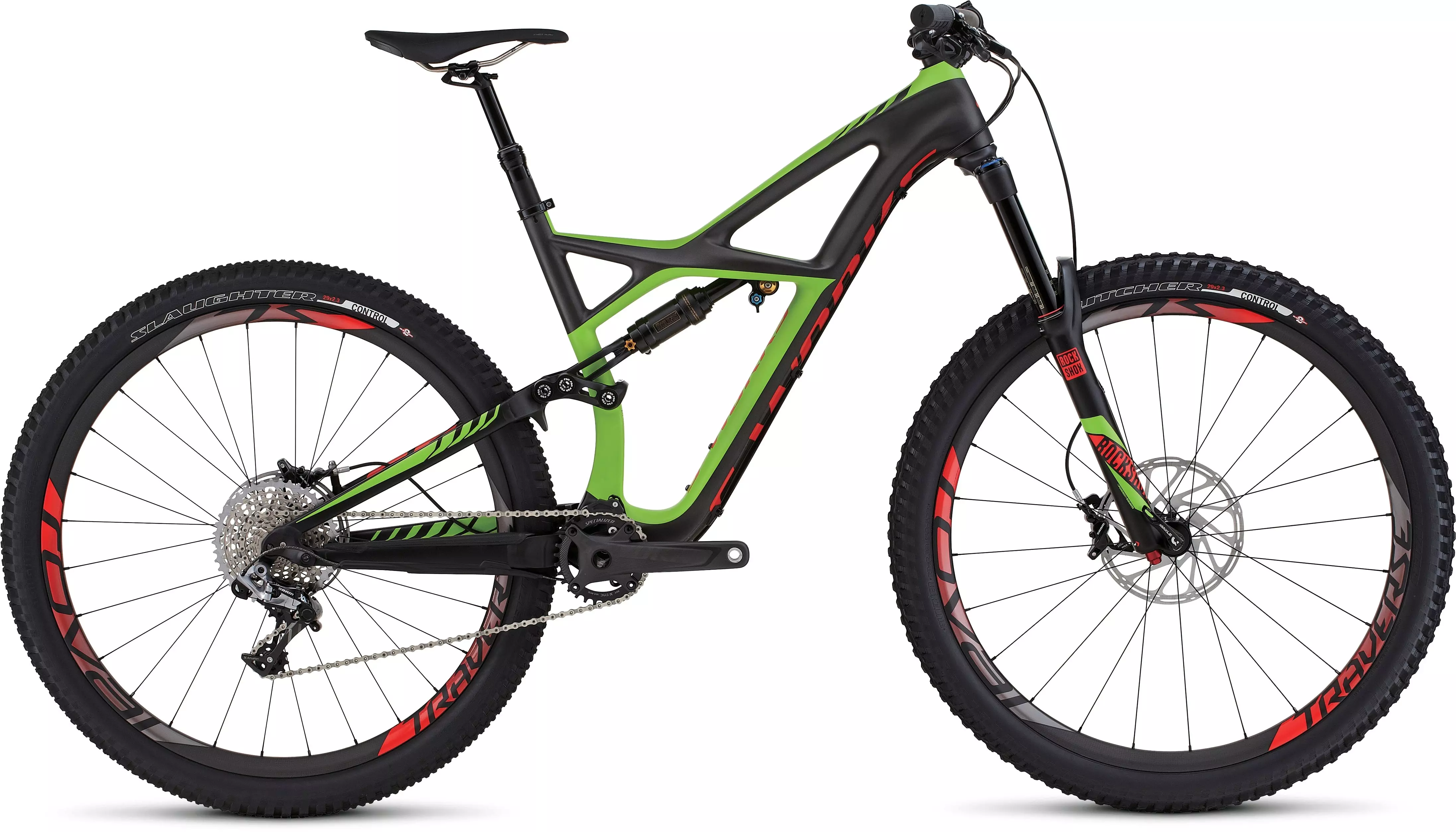 To ride all mountain, your bike has to be able to ride the entire mountain. This means being ready for whatever the trail throws at you, whether it's heading up or down, and there's no better bike for doing this with speed than the S-Works Enduro FSR 29. To keep the weight down, the frame is constructed from our top-tier FACT IS-X 11m carbon fibre. This material comes with the added benefit of being incredibly stiff, which is balanced out by our 29 Geometry's roomy top tube, short chainstays, slack head tube, and longer wheelbase. To ensure top-level performance on the descents, this geo is mated with 160mm of plush travel up front and 155mm at rear. And handling suspension duties out back is the revolutionary Öhlins single tube rear shock. For the build, the Enduro spares no expense at hitting the pinnacle of performance, with a full SRAM XX1 groupset, powerful Guide RS Carbon brakes, hand-built carbon Roval wheels, and our all-new Command Post IRcc with up to 10 middle positions. Make the mountain bend to you.