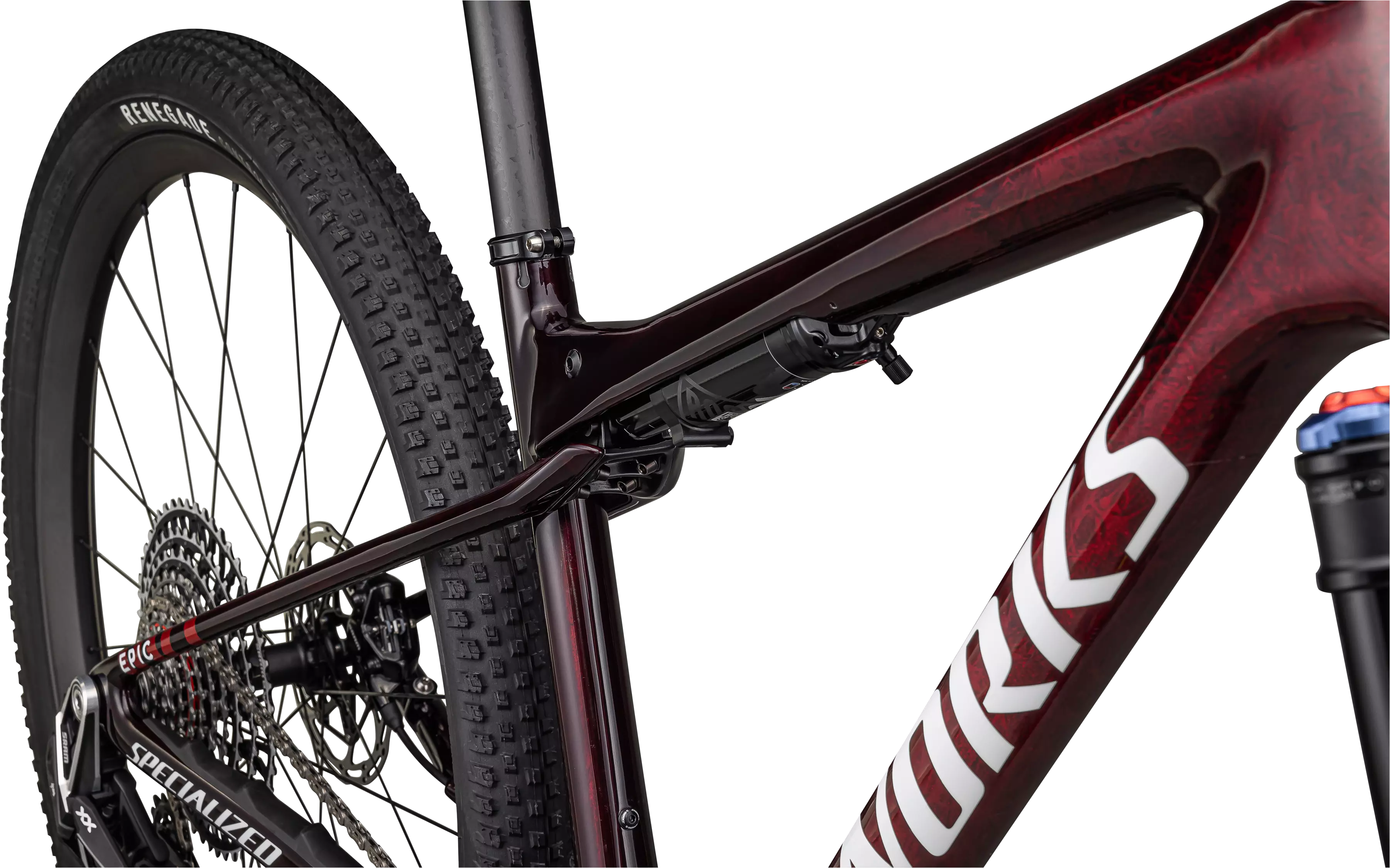 SHOCKINGLY FAST: The Specialized Ride Dynamics team conceived of and invented a revolutionary shock technology for the Epic World Cup that gives the rider the efficiency and snappy response of a hardtail PLUS the control, capability, and momentum-carrying of full suspension—all with a simple setup. Co-developed with RockShox, the SID Deluxe WCID shock utilizes a unique independently adjustable positive and negative air springs to deliver the sought-after hardtail “snap”, combined with terrain-devouring forgiveness, and the ability to easily personalize set-up for a specific course or tune for rider preference and feel. Set it firm and it rides like a hardtail or open it up and you have a chunk-squashing ripper. But you aren't just limited “open and closed,” the simple nature of its setup allows the rider to set on a spectrum of firm to soft.