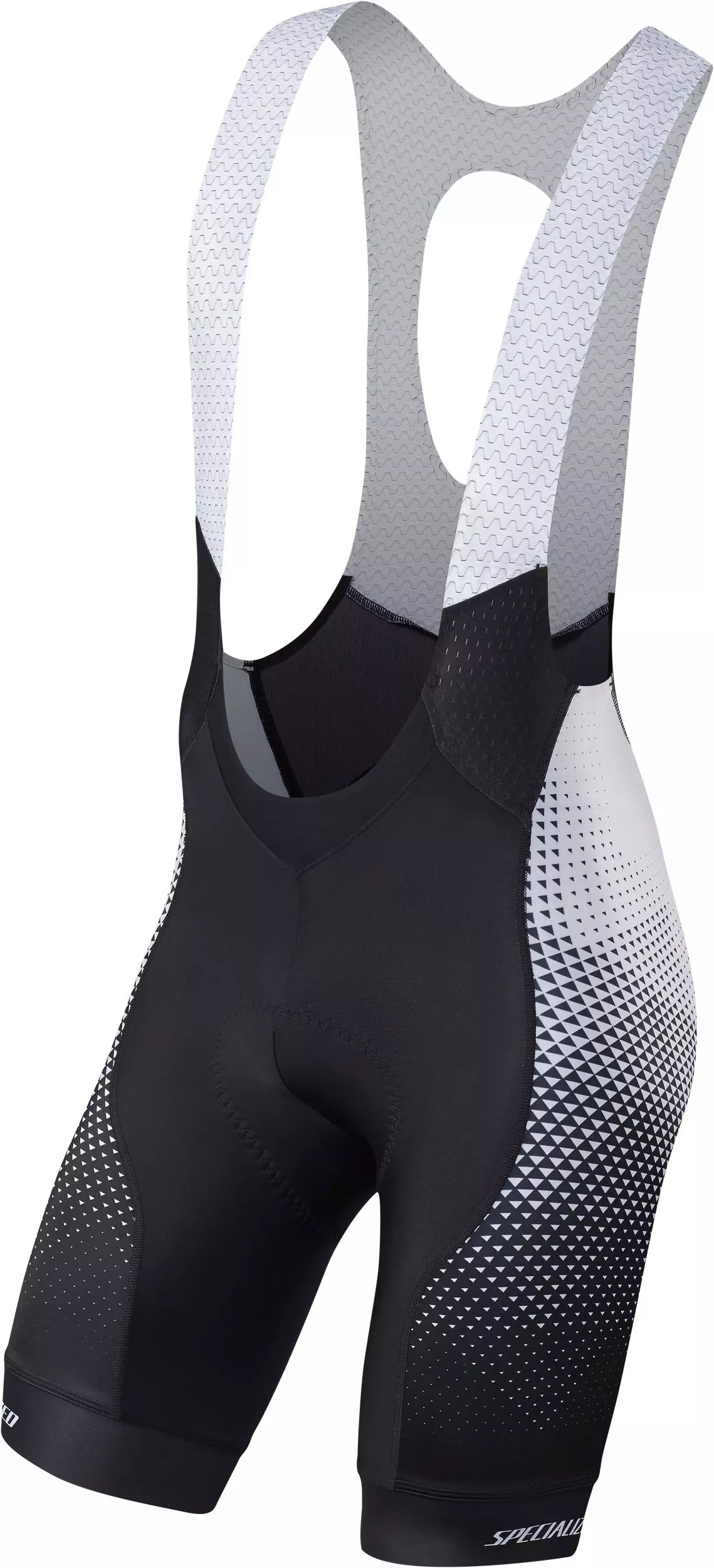 Meanwhile, the fit has also been given a tremendous amount of detail. You'll find that it follows an articulated design in order to accommodate the movements and position of cycling. And to make sure that the fit holds, we designed the leg openings around a silicone infused fabric cuff that gently, yet firmly, holds the legs in place. Not only that, but the bib uppers feature a welded construction that's free from seams in order to eliminate unwanted friction, while also strongly holding the braces in place.