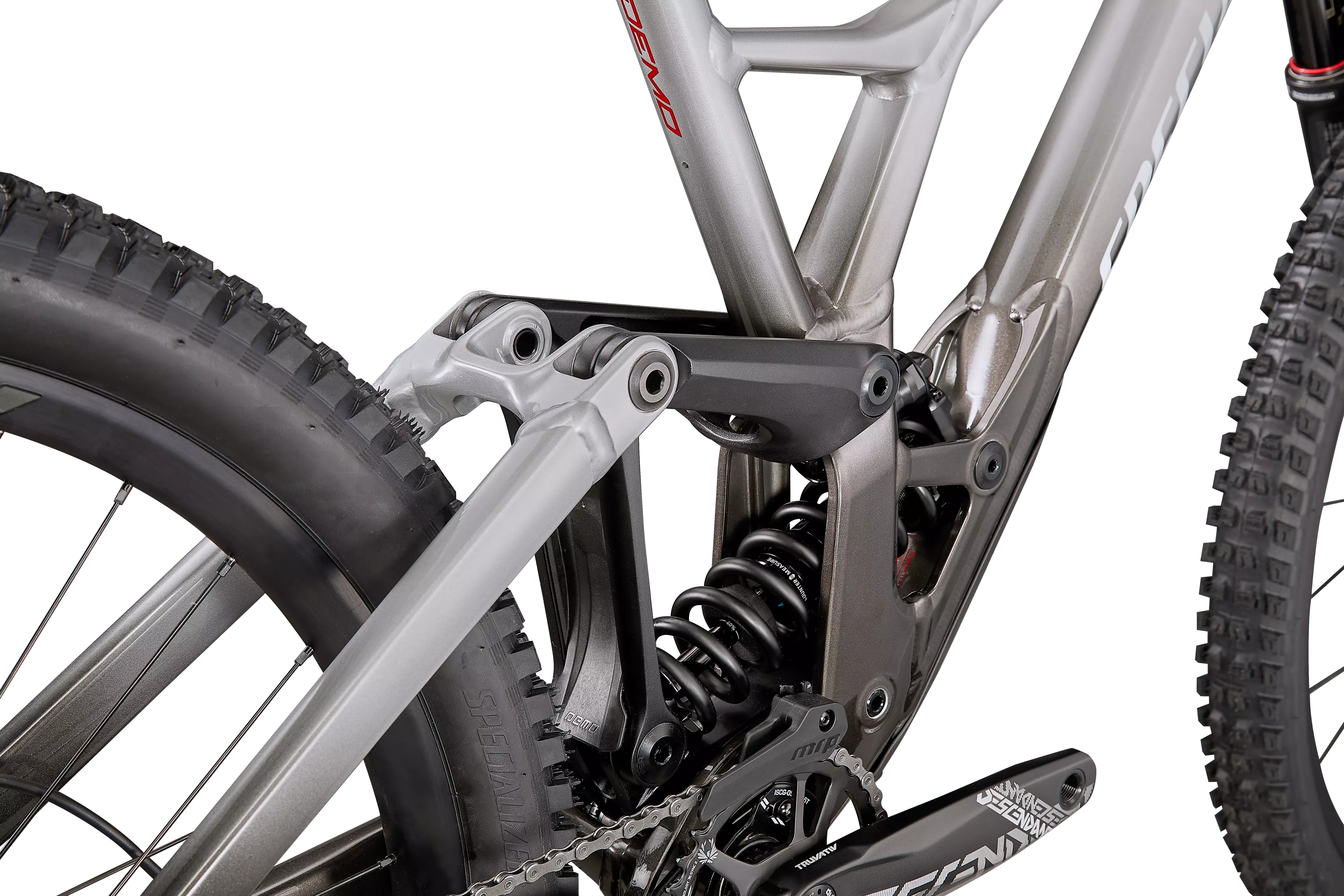 The Demo Expert M5 alloy frame is fully optimized to take advantage of the traction benefits of a 29-inch front wheel and the increased manueverability of a 27.5-inch rear wheel while maintaiining the ability to change your rear wheel size to 29-inch to suit different terrain and riding styles with an adjustable rear end that ensures chainstay length and bottom-bracket height stay dialed no matter the hoop size.