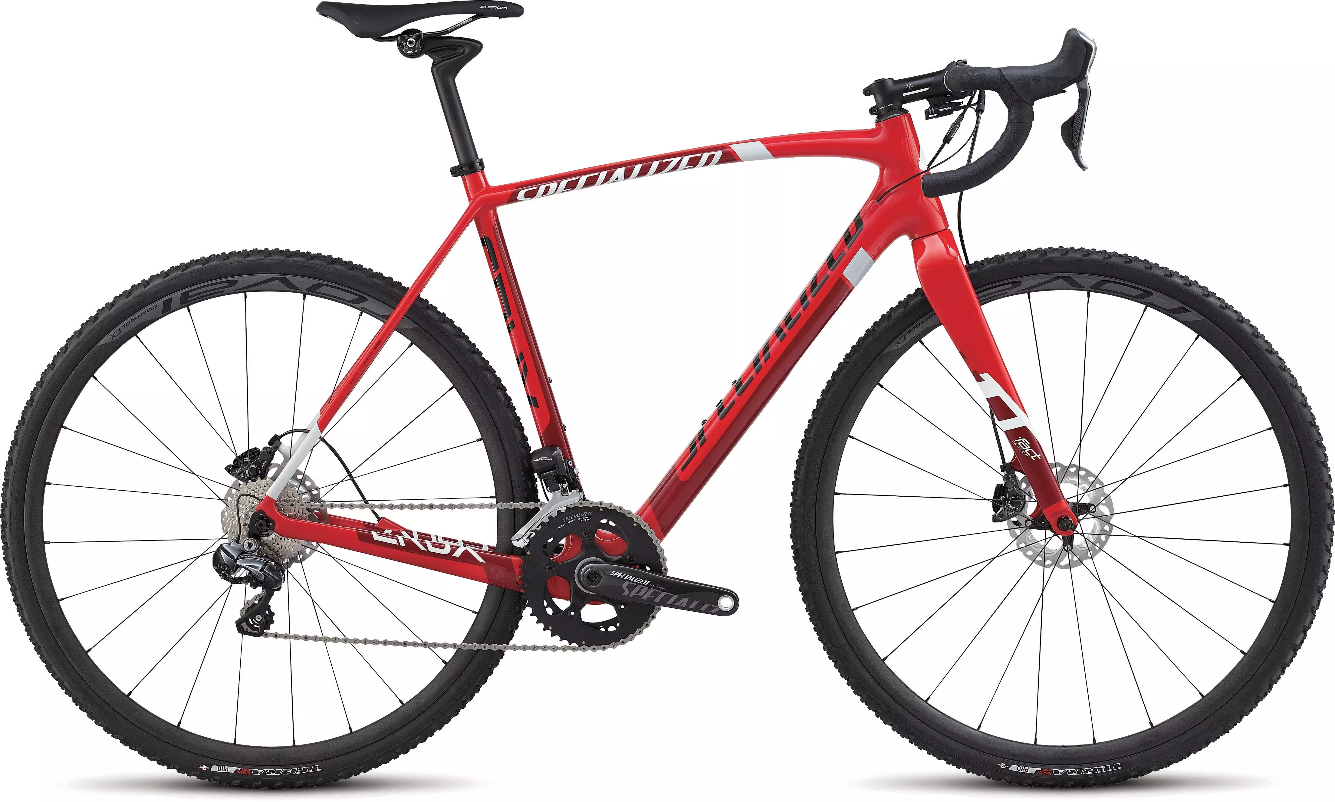 The CruX Pro Race UDi2 is a 'cross beast, with race-optimized geometry, tapered headtube, internal cable routing, and an outstanding stiffness-to-weight ratio to power through the nastiest courses. Roval Control CX Carbon Disc wheels and Shimano Ultegra Di2 electronic drivetrain with integrated hydraulic disc brakes complete the uber-tough, race-ready package.