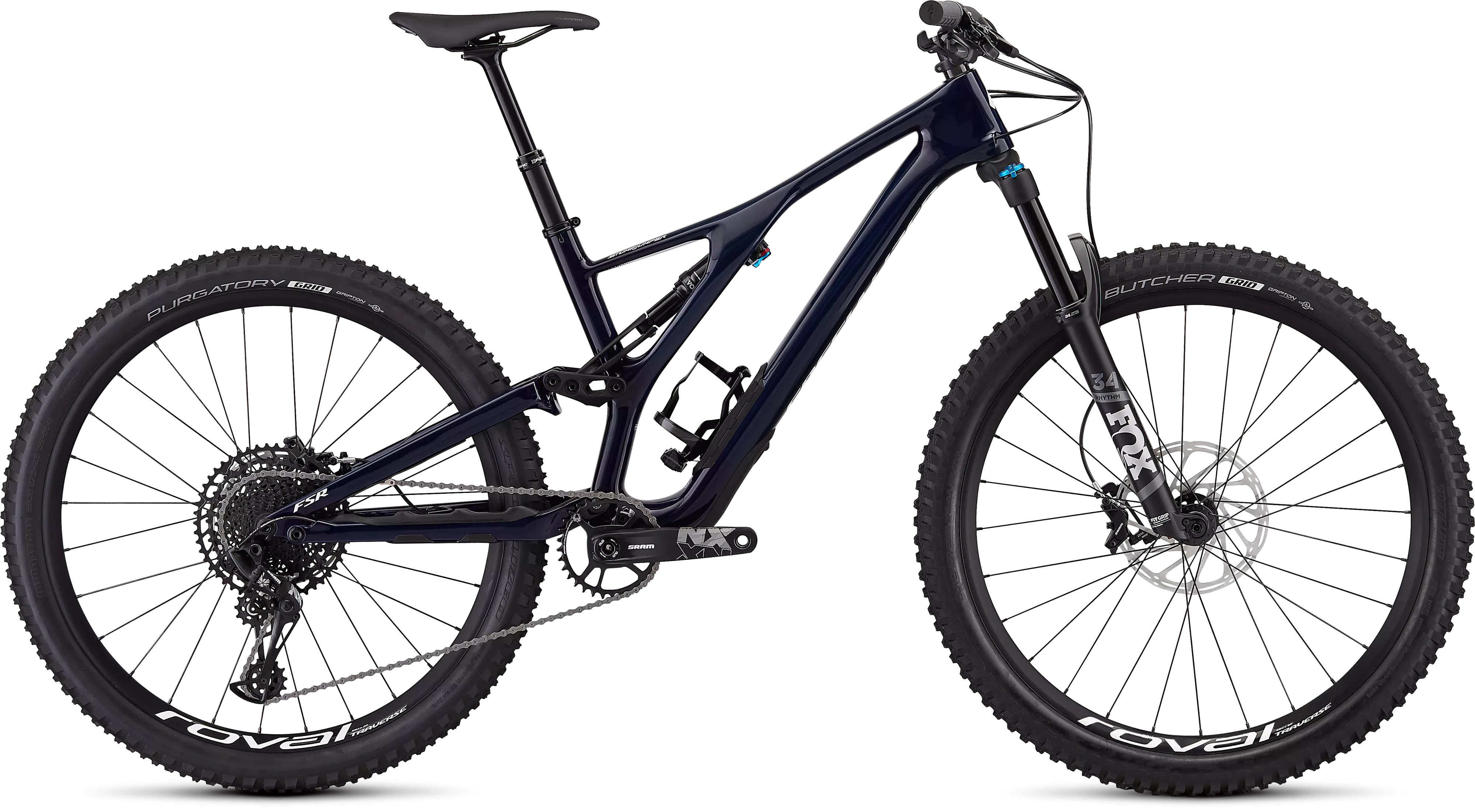 The build on this Comp model comes with a list of components that deliver undeniable quality, like a like a 12-speed SRAM NX Eagle drivetrain, SRAM Guide R disc brakes, a FOX FLOAT Rhythm 34 for with 130mm of travel, a FOX FLOAT DPS rear shock with 130mm of travel, and Roval Traverse 27.5 wheels.