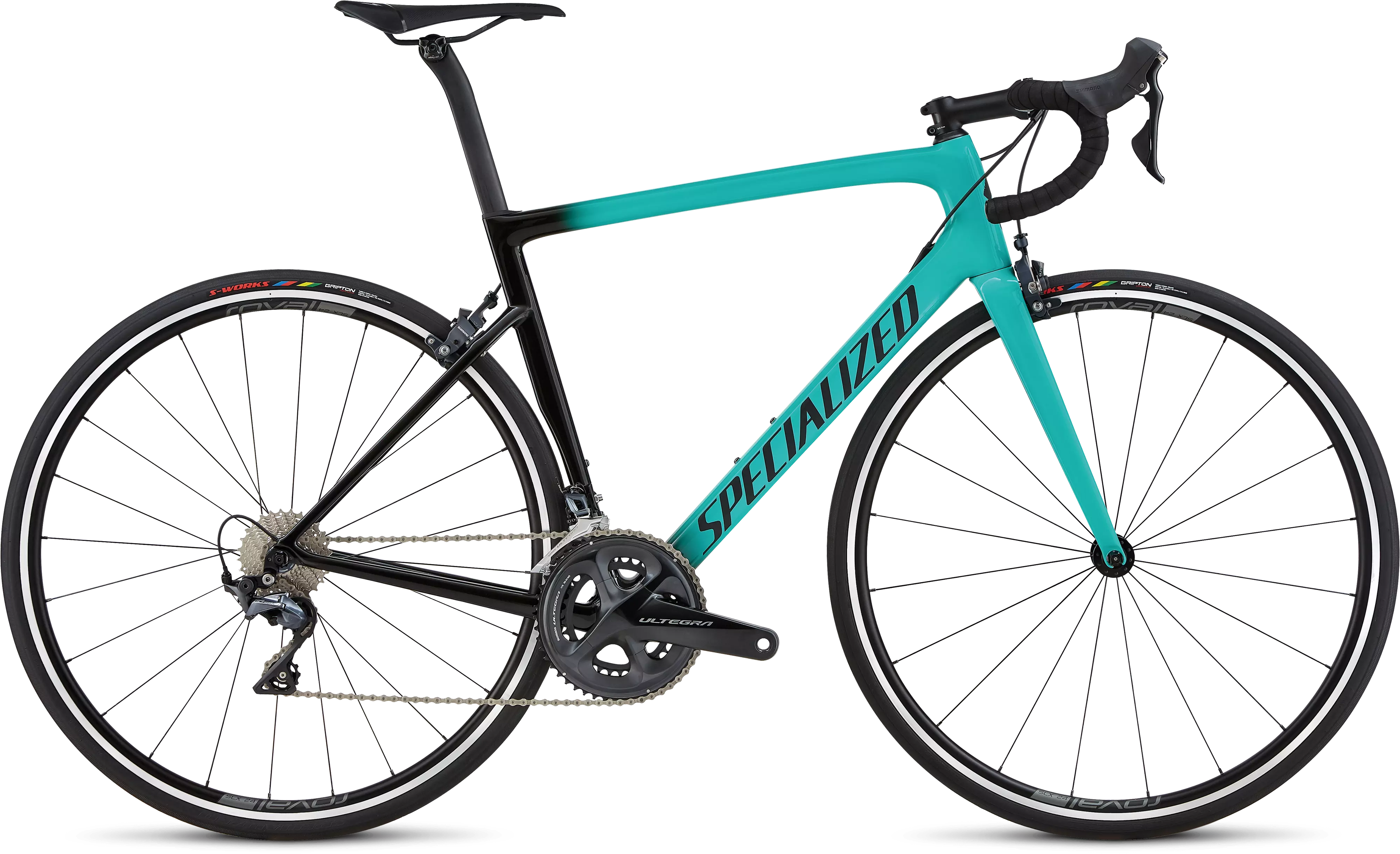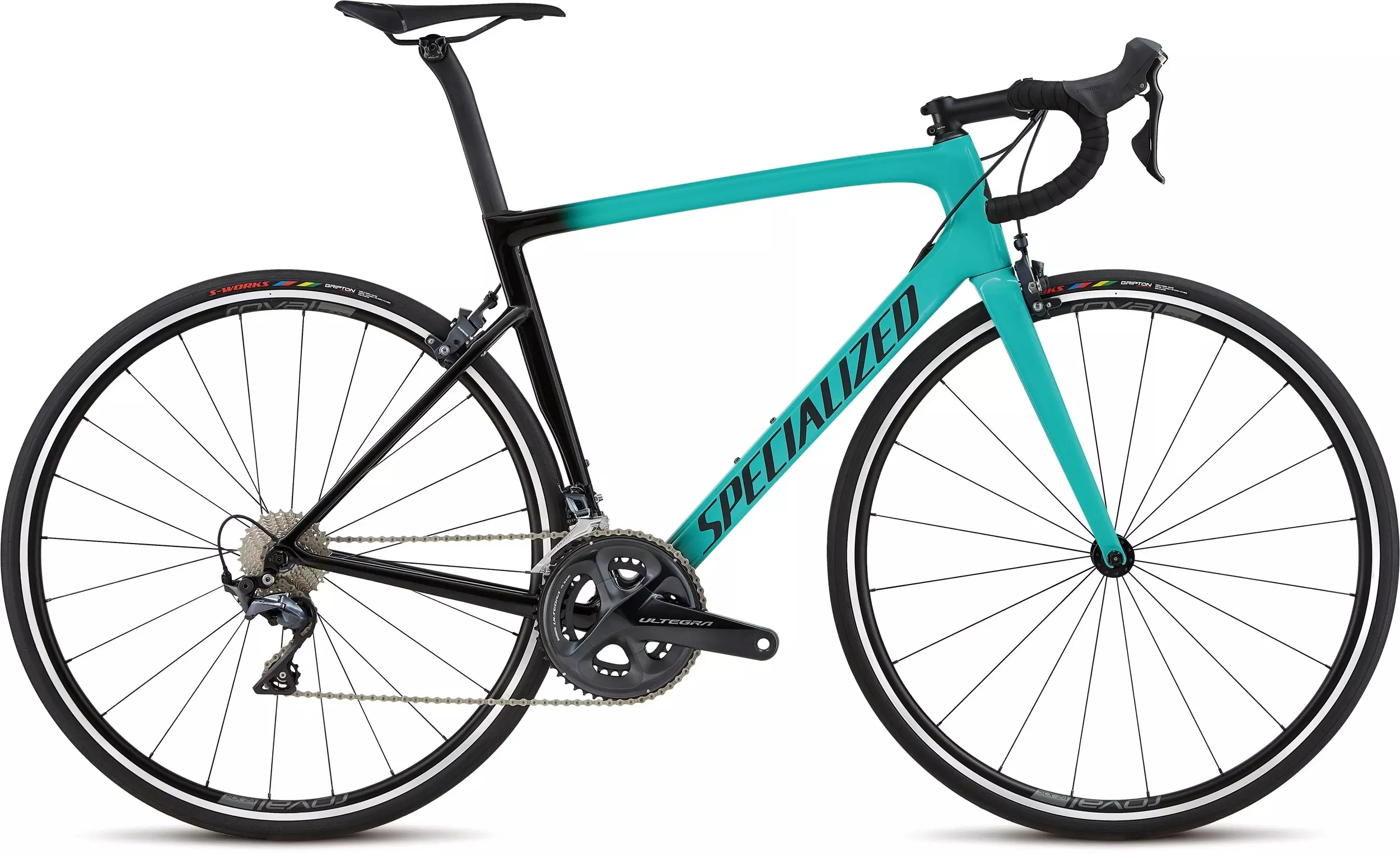 This new Tarmac comes ready to race out of the box, featuring a crisp Shimano Ultegra 8000 groupset, resplendent Roval SLX 24 alloy rims laced to DT Swiss hubs, our fastest S-Works Turbo 26mm tires, and a sublime Toupé Expert Gel saddle.