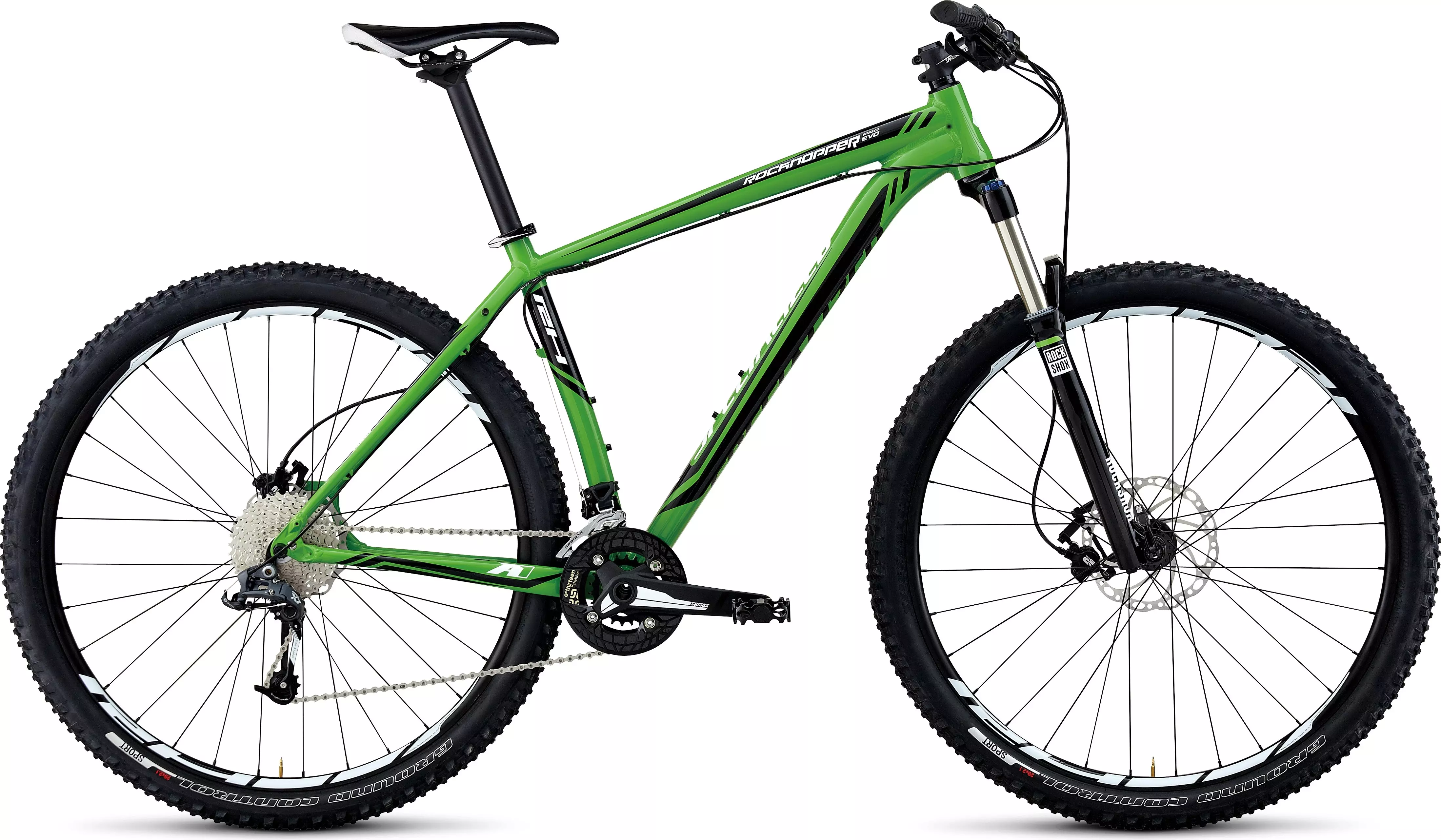 The EVO model uses the same fully butted A1 Premium frame as other Rockhopper models, but delivers a more aggressive trail experience. The 120mm-travel RockShox fork relaxes the geometry for more stable handling, and a bash guard improves chain retention and drive train durability