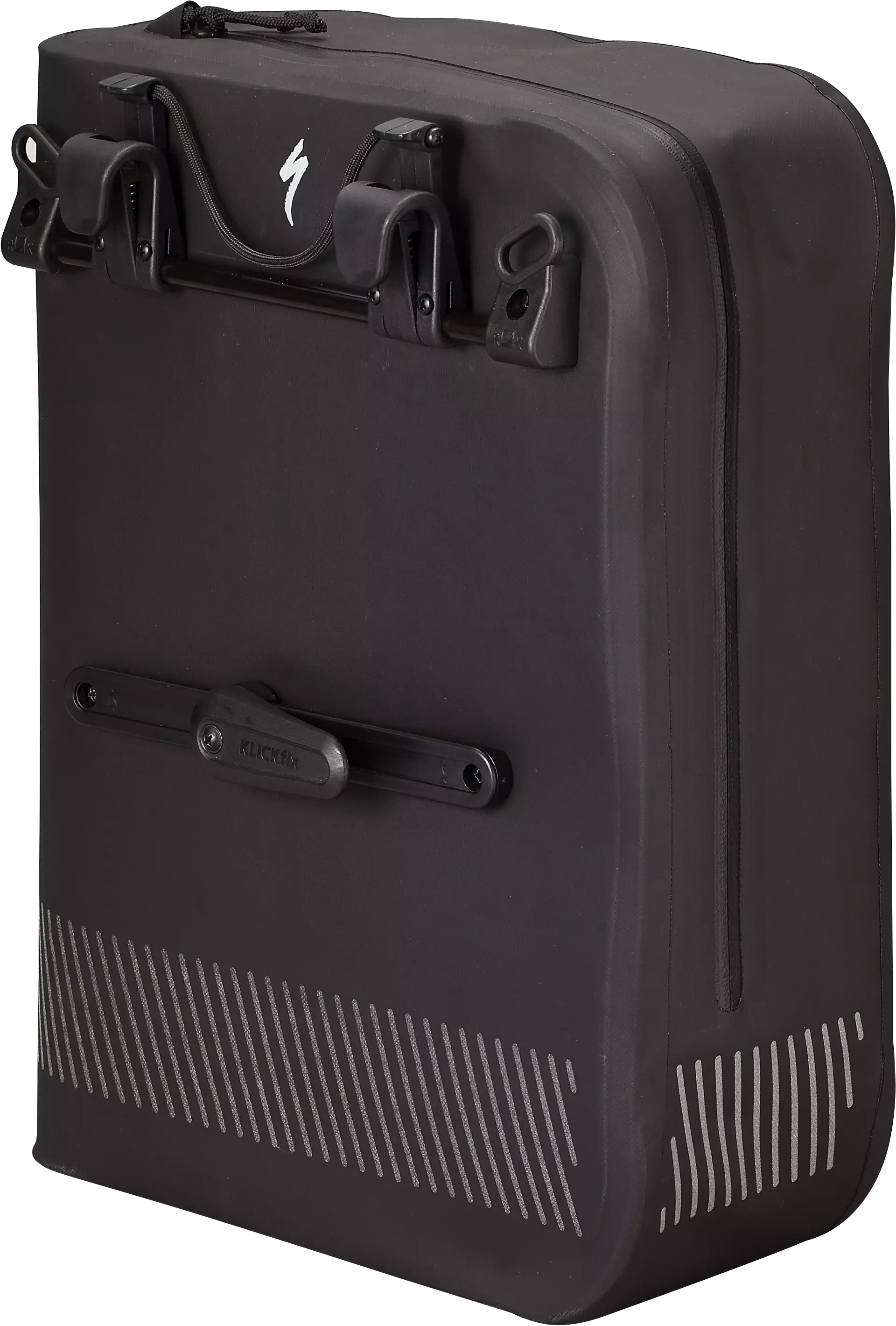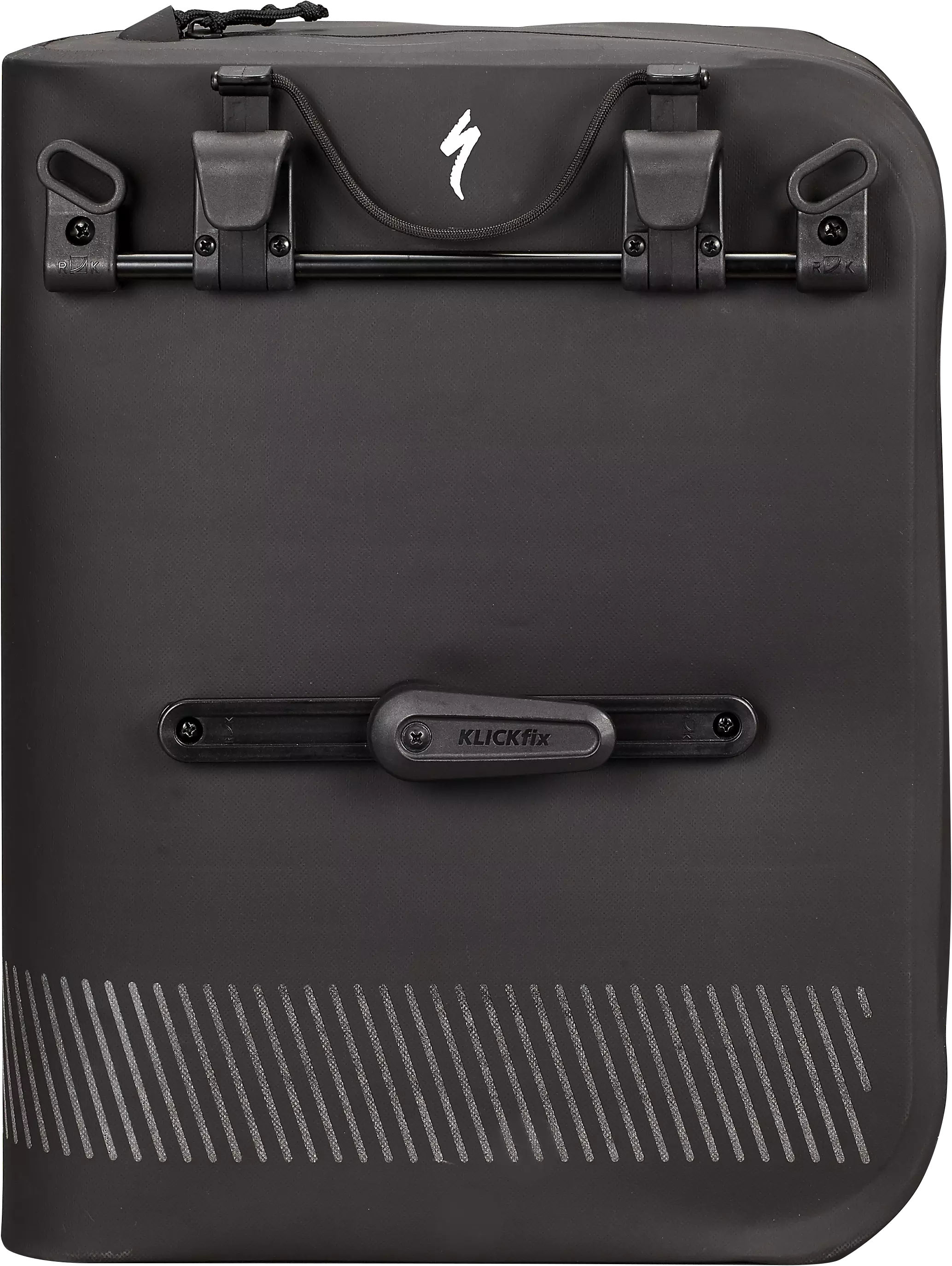 Klickfix mounting system lets you load the bags on and off your bike quickly for easy transitions, freeing up the top of the rack for additional carrying.