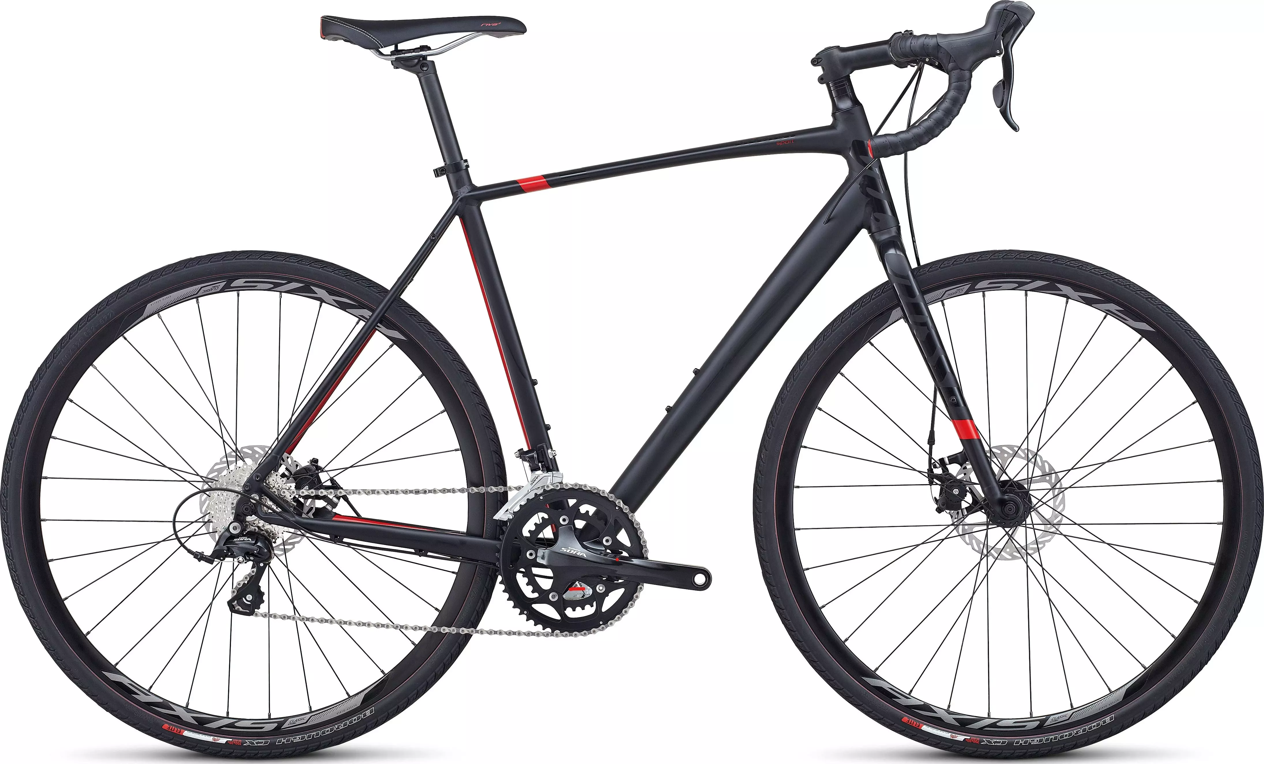 Tricross Sport Disc is the perfect do-it-all bike for anything from trails to commuting to touring, with rack/fender mounts and secondary brake levers. 9-speed Shimano components, disc brakes, and a carbon fork give a wider range of gears, better all-condition braking, smoother ride, and quicker handling.