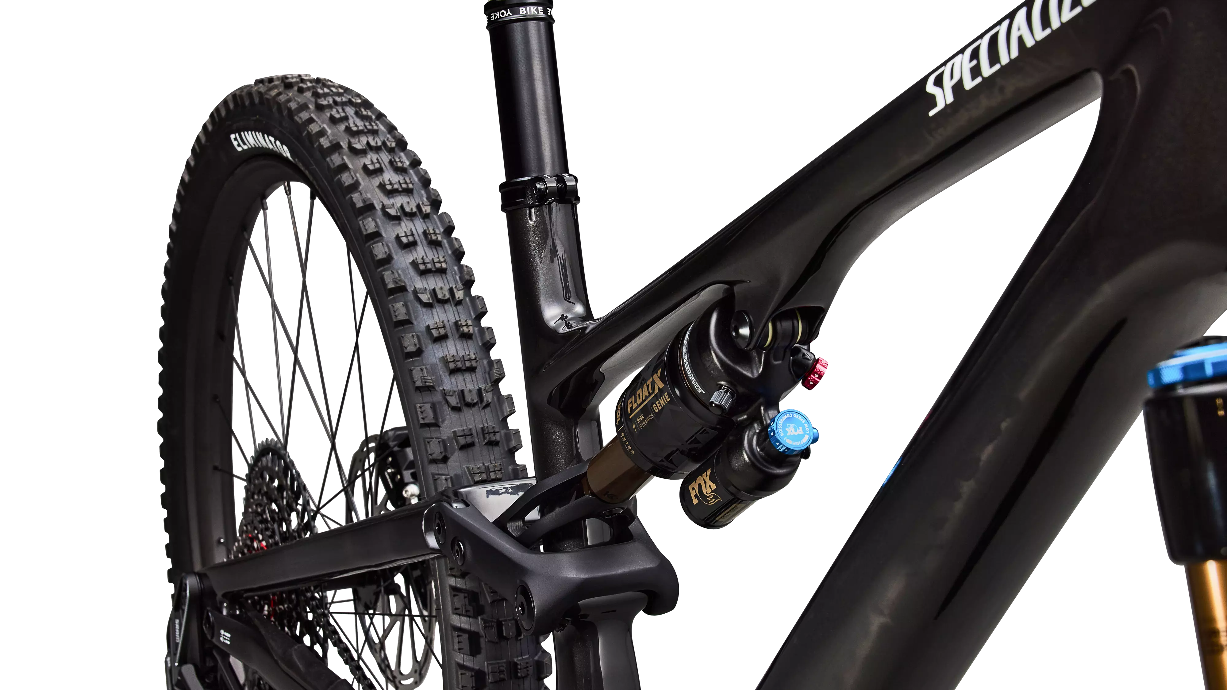 Ride Dynamics tuned FOX FLOAT X Factory with Specialized GENIE Shock Tech. Highly adjustable 2-position open and firm mode with the 3-position open mode compression adjuster