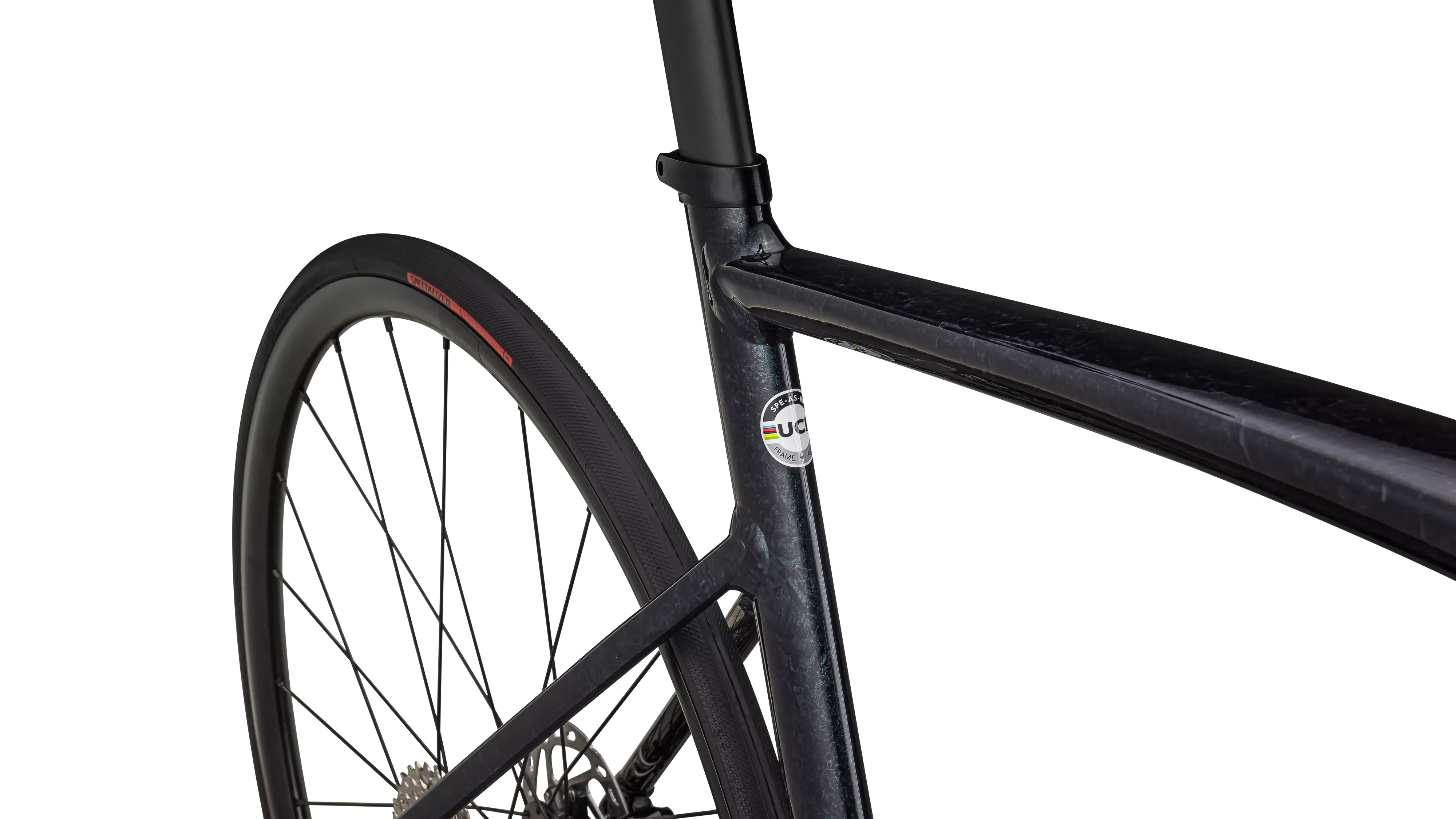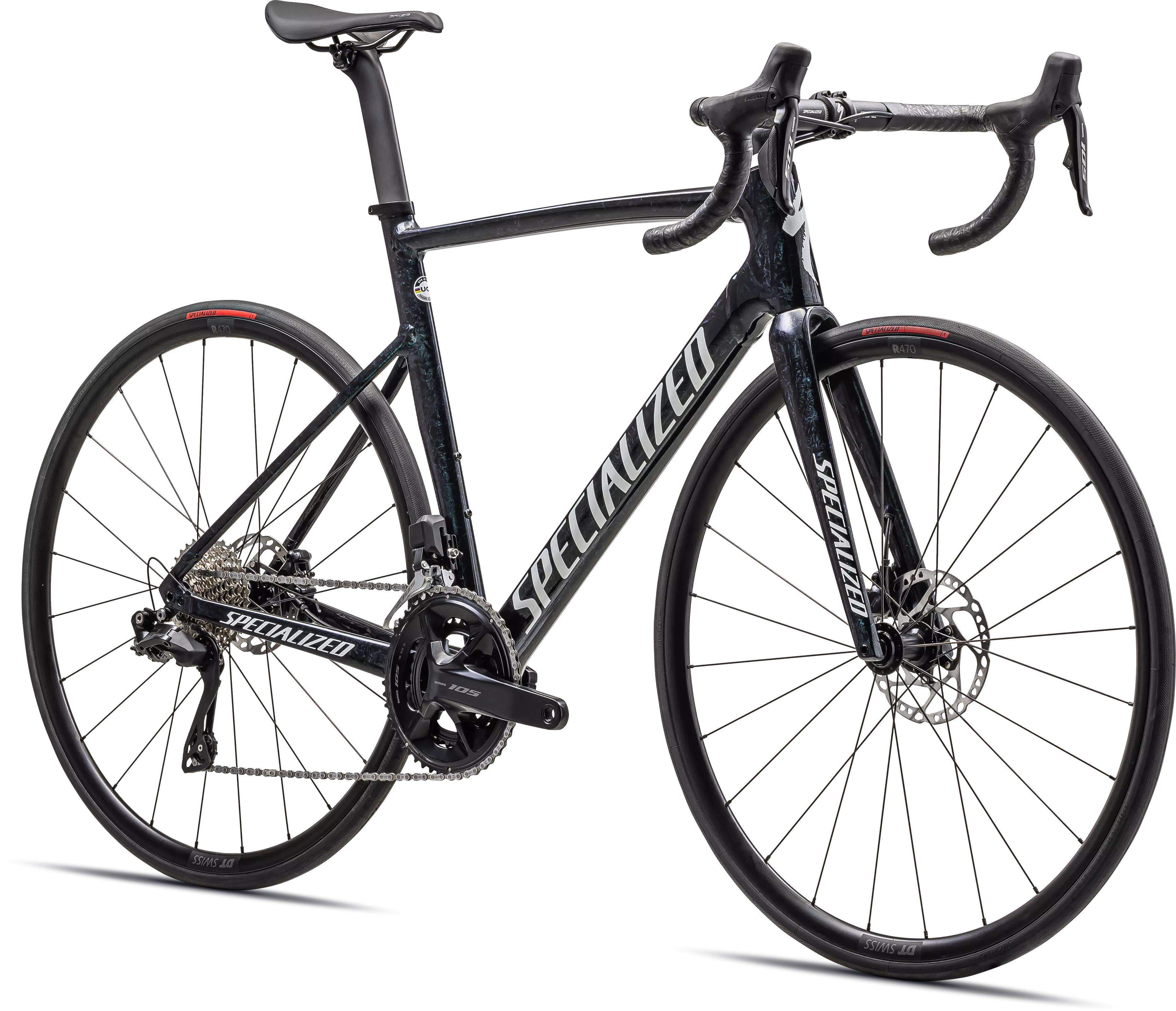 Specialized E5 Premium Aluminum Disc frame with D'Aluisio Smartweld Sprint Technology, hydroformed aluminum tubing, tapered head tube, fully internally routed cables, threaded BB