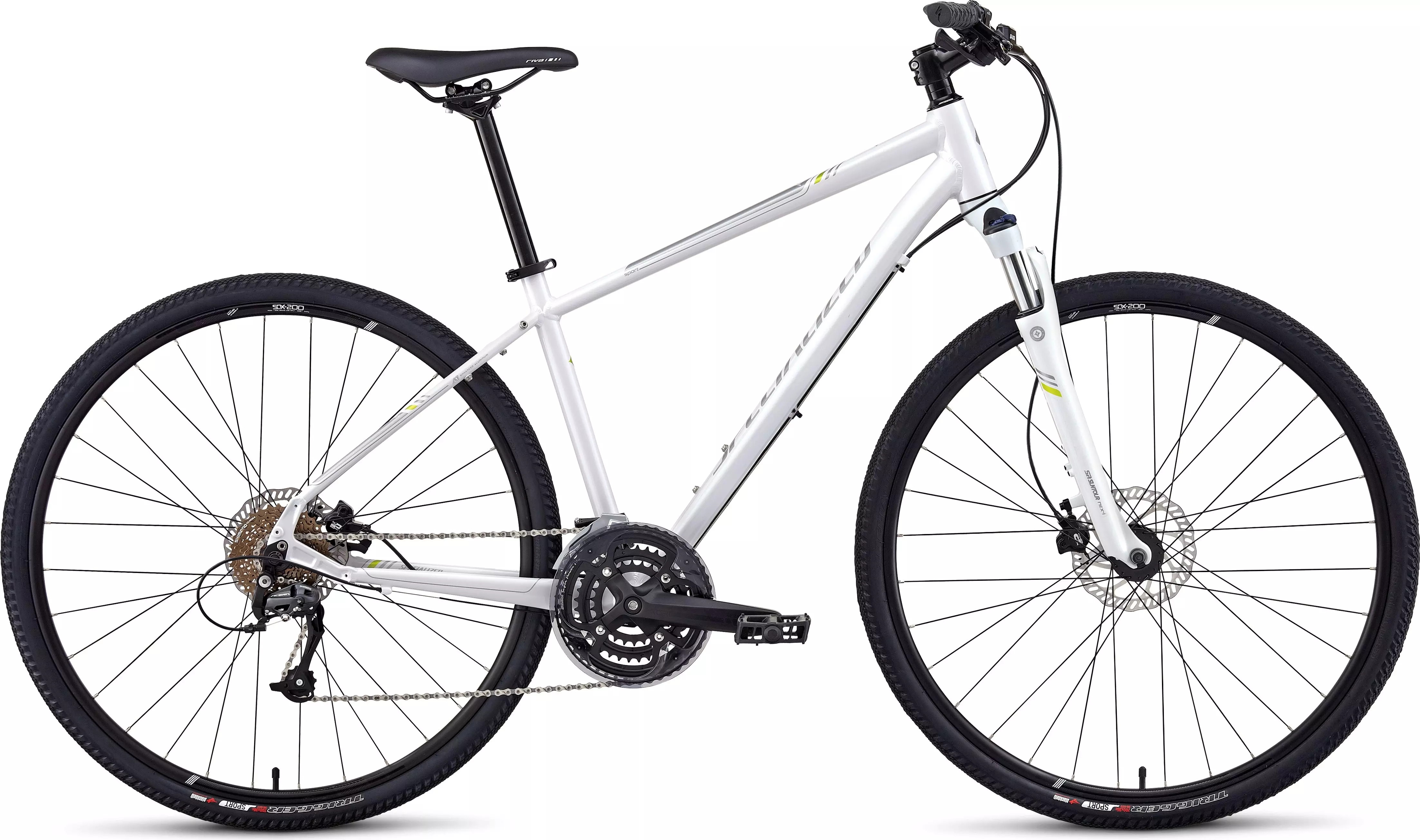 SR Suntour 9-speed triple crankset and 11-32 cassette gives you all the gears you need for varied terrain, plus Shimano Acera rear derailleur for crisp and reliable shifting