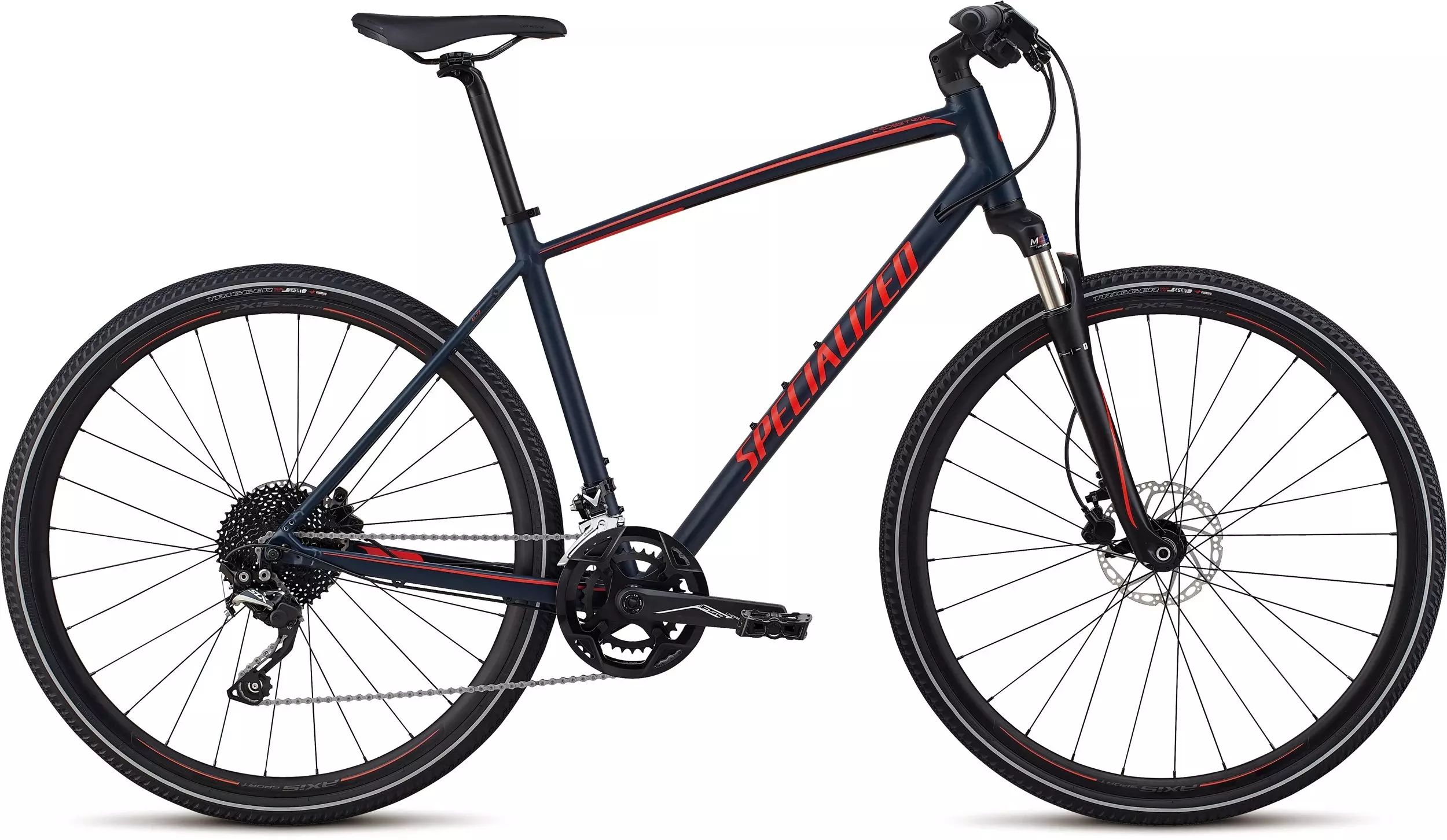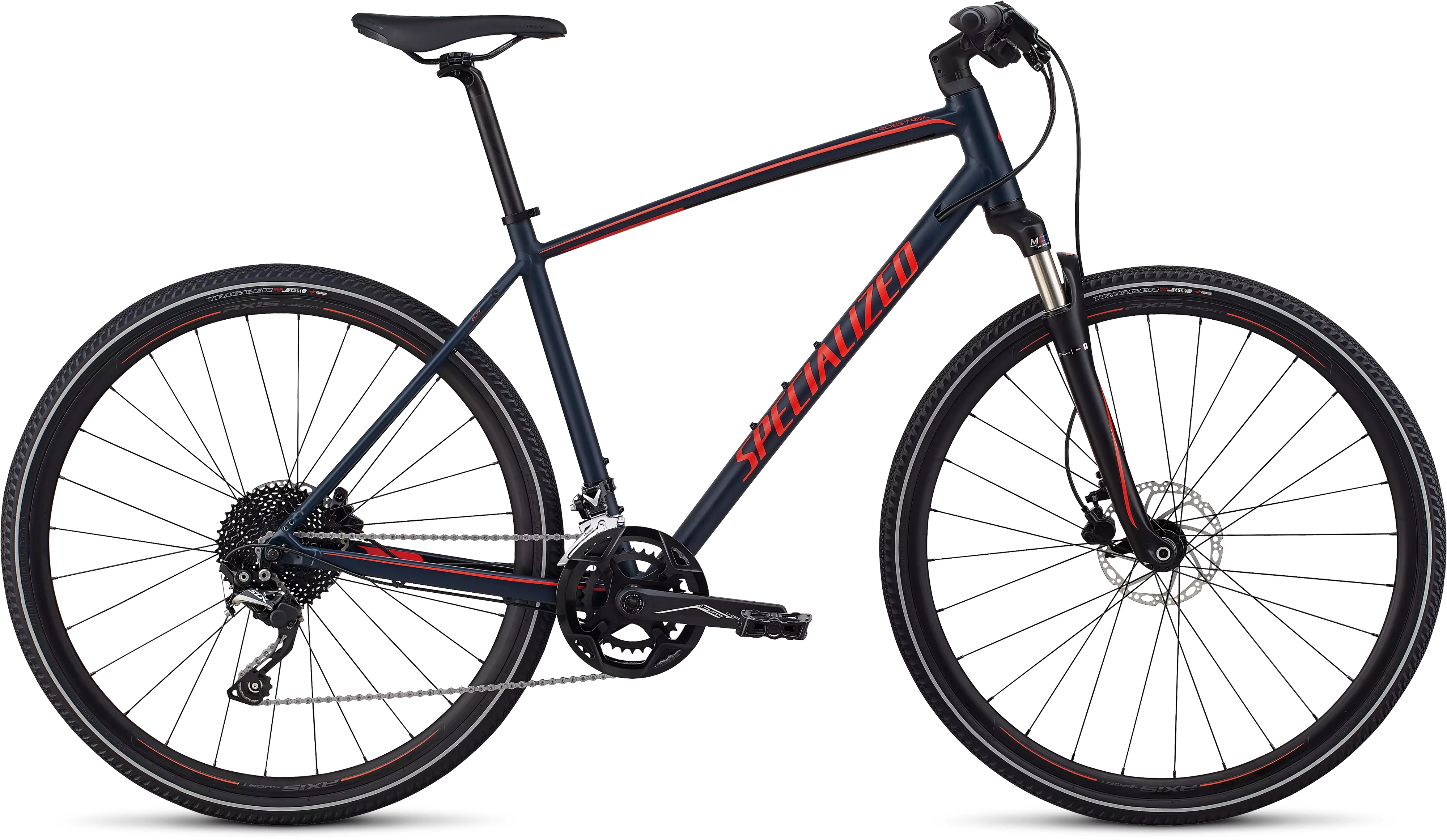 An SR Suntour NCX fork features 60mm of coil-sprung travel that takes the sting out of bumpy terrain, while our Fitness Brain technology promotes more climbing and pedaling efficiency.