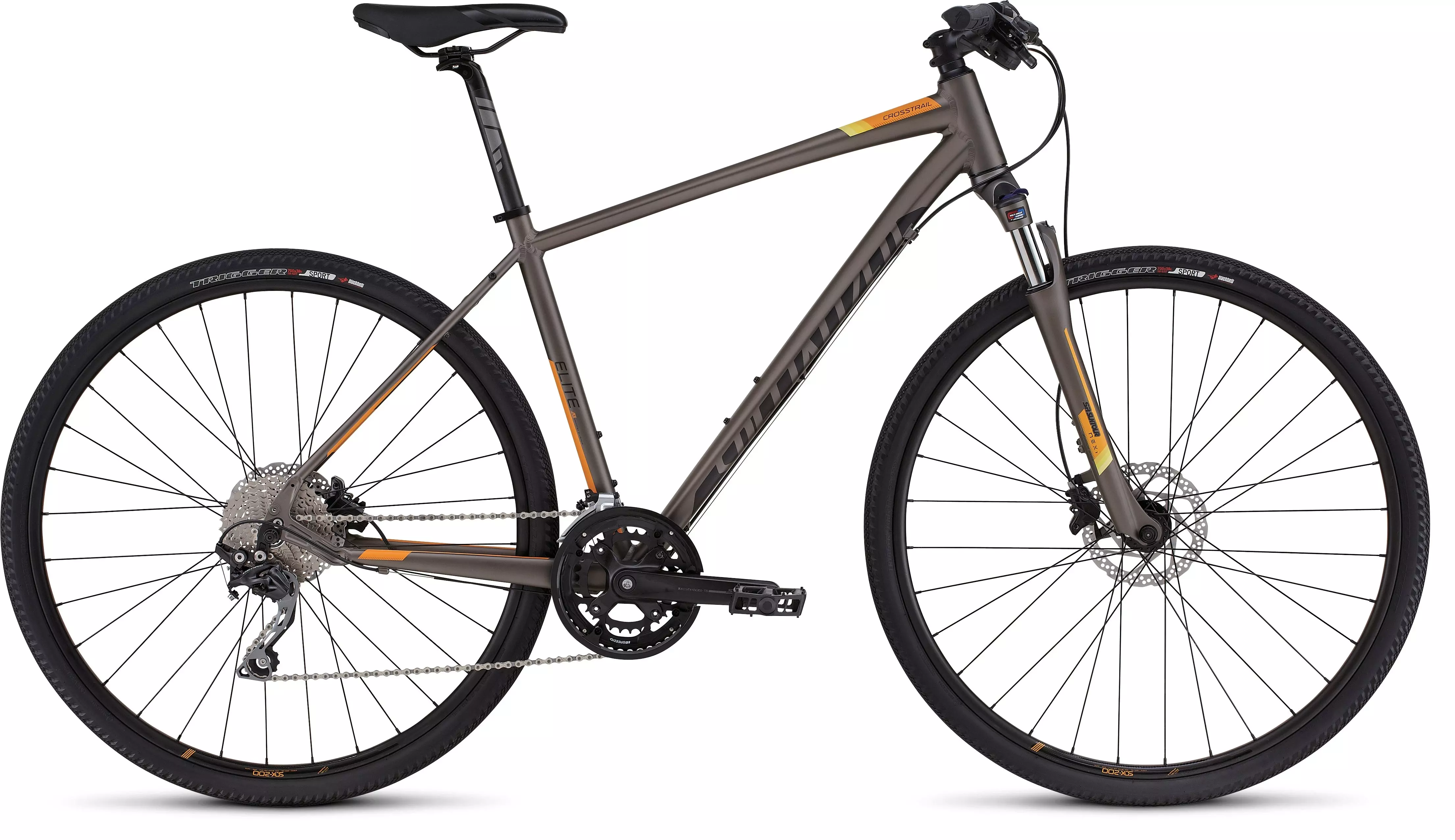You take your fitness journey seriously, and the last thing that you need is to feel restrained by the tools that get you there. That's why our Crosstrail Elite Disc comes equipped with a custom suspension fork with a lockout feature for fast and efficient use over any surface. To build on this blend of comfort and speed, the frame is built from lightweight A1 Premium aluminum tubing with a geometry that's made to fit just right from the minute you get on the bike. Add in a mix of Shimano's workhorse Deore components, hydraulic disc brakes, and rack/fender mounts, and you have a bike that's perfectly equipped to help you hit your fitness goals.