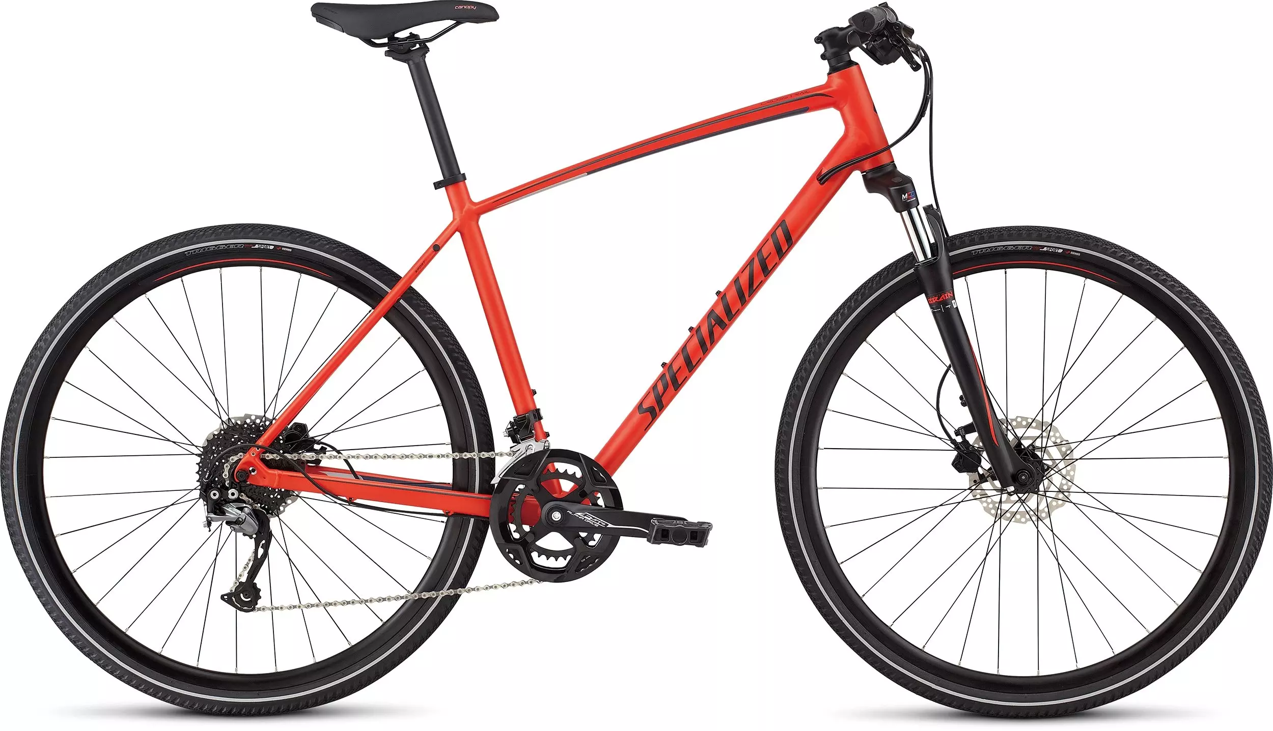 Specialized A1 SL Premium Aluminum, Fitness Geometry, fully-manipulated butted tubing, internal cable routing, flat mount disc, rack & Plug + Play mounts