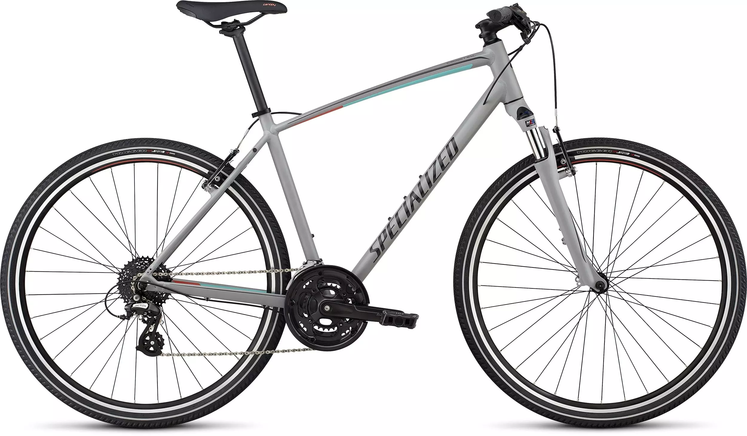 The key to hitting your fitness goals is to mix things up a bit. That's why our Crosstrail comes equipped with a custom suspension fork with a lockout feature for fast and efficient use over any surface. To build on this blend of comfort and speed, the frame is built from lightweight A1 SL Premium aluminum tubing with a geometry that's made to fit just right from the minute you get on the bike. Add in a selection of strong, no-fuss components and rack/fender mounts, and you get a bike that's ready and able to deliver you to your goals.