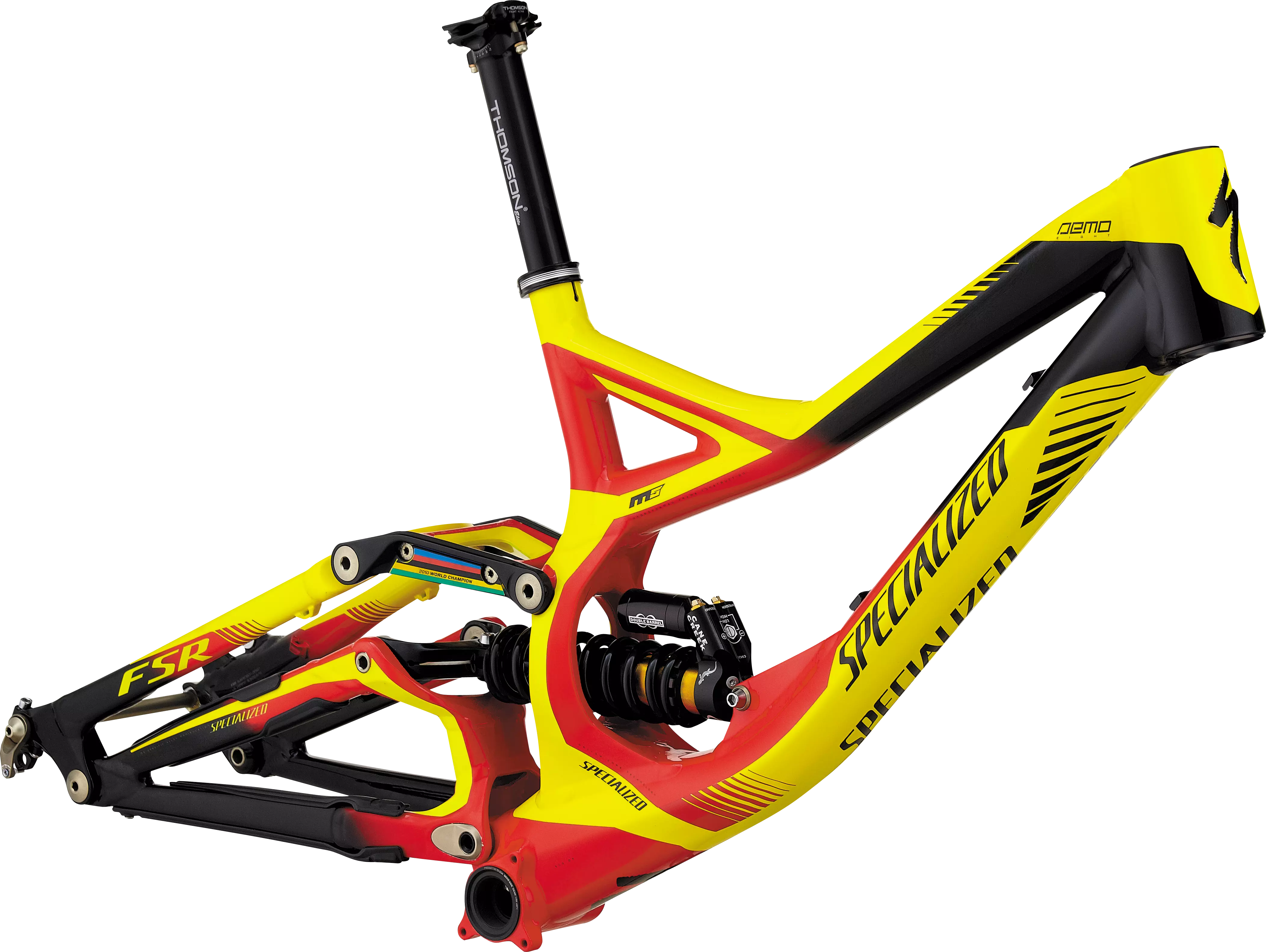 The Demo 8 has two Downhill World Championships to its name, build up your own race machine with this frameset. With 200mm of rear wheel travel, FSR suspension, Cane Creek Double Barrel shock and 1.5