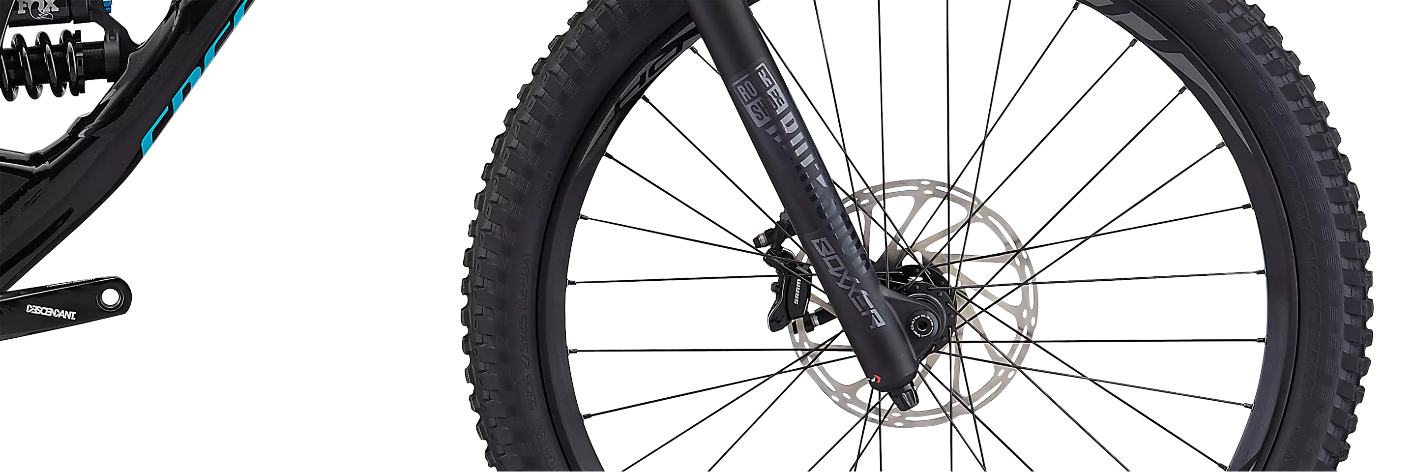 • RockShox’s BoXXer RC 27.5 fork offers 200mm of smooth, controlled travel.