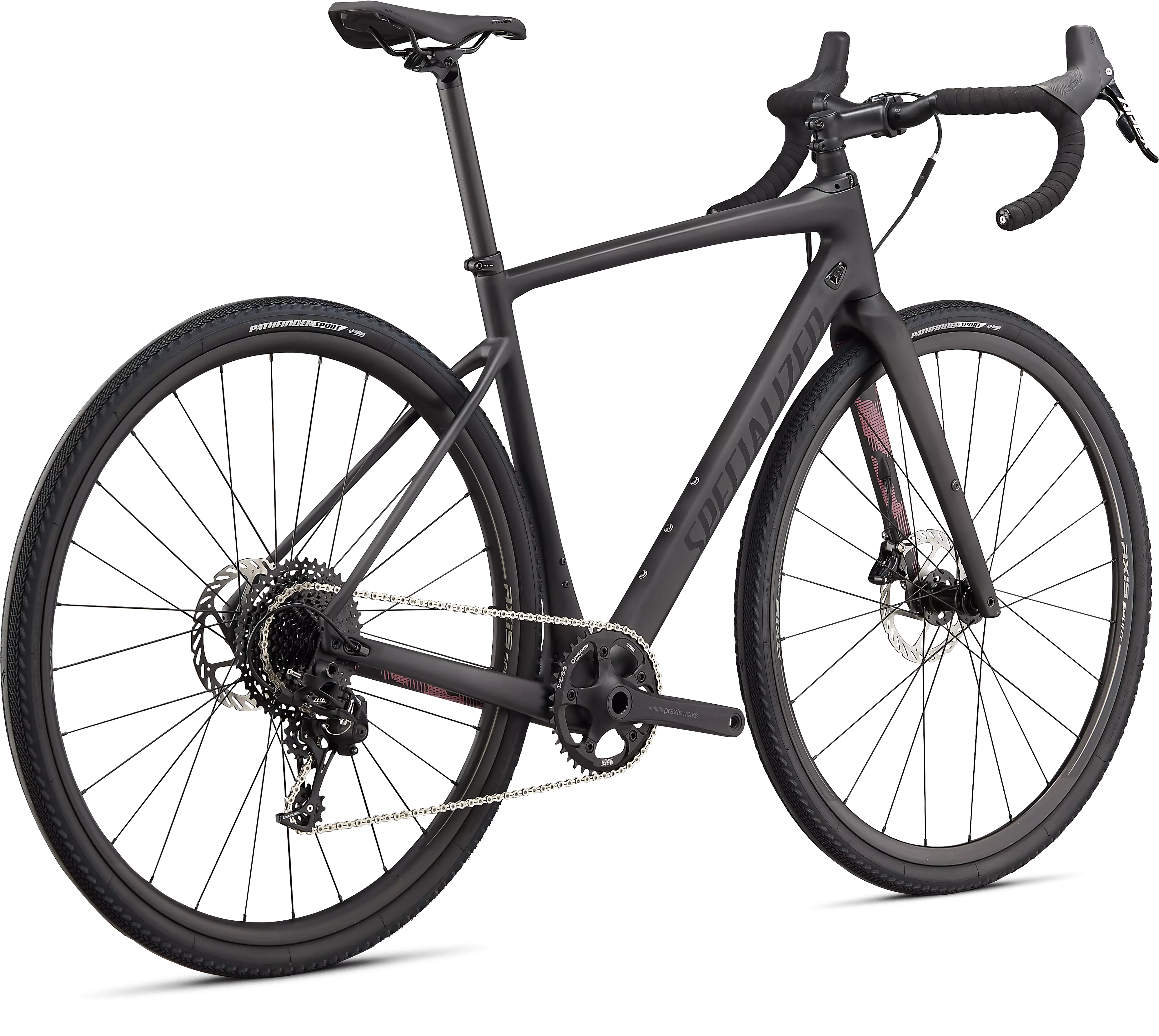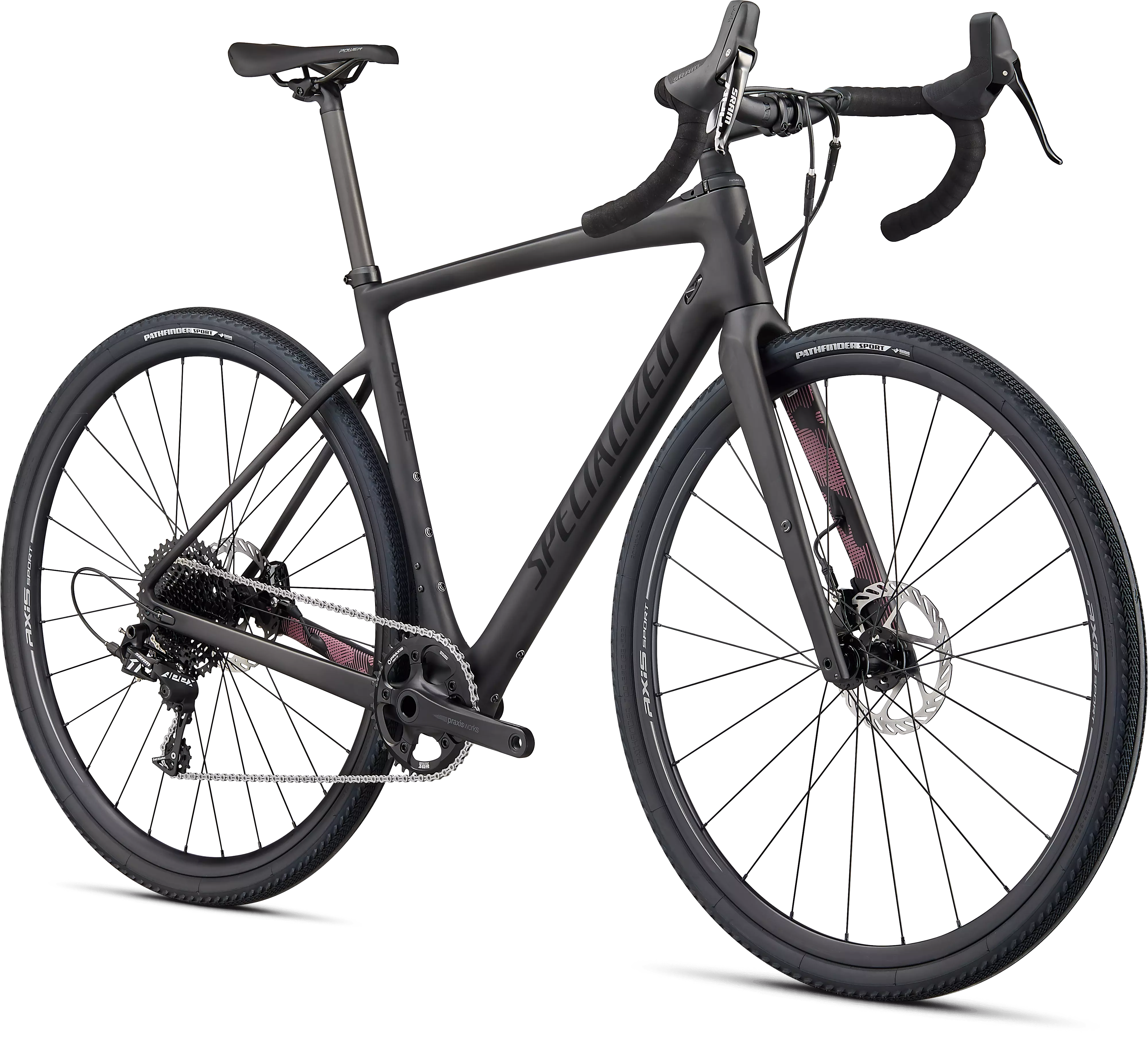 This Diverge delivers a tremendous value for anyone who’s gravel-curious. We spec’d it with SRAM's Apex 1x11 group for its crisp shifts and powerful hydraulic disc brakes, as well as reliable Axis Sport Disc wheels, a Praxis Alba crankset, 38mm Pathfinder Sport tires, and our fan-favorite Power Sport saddle.