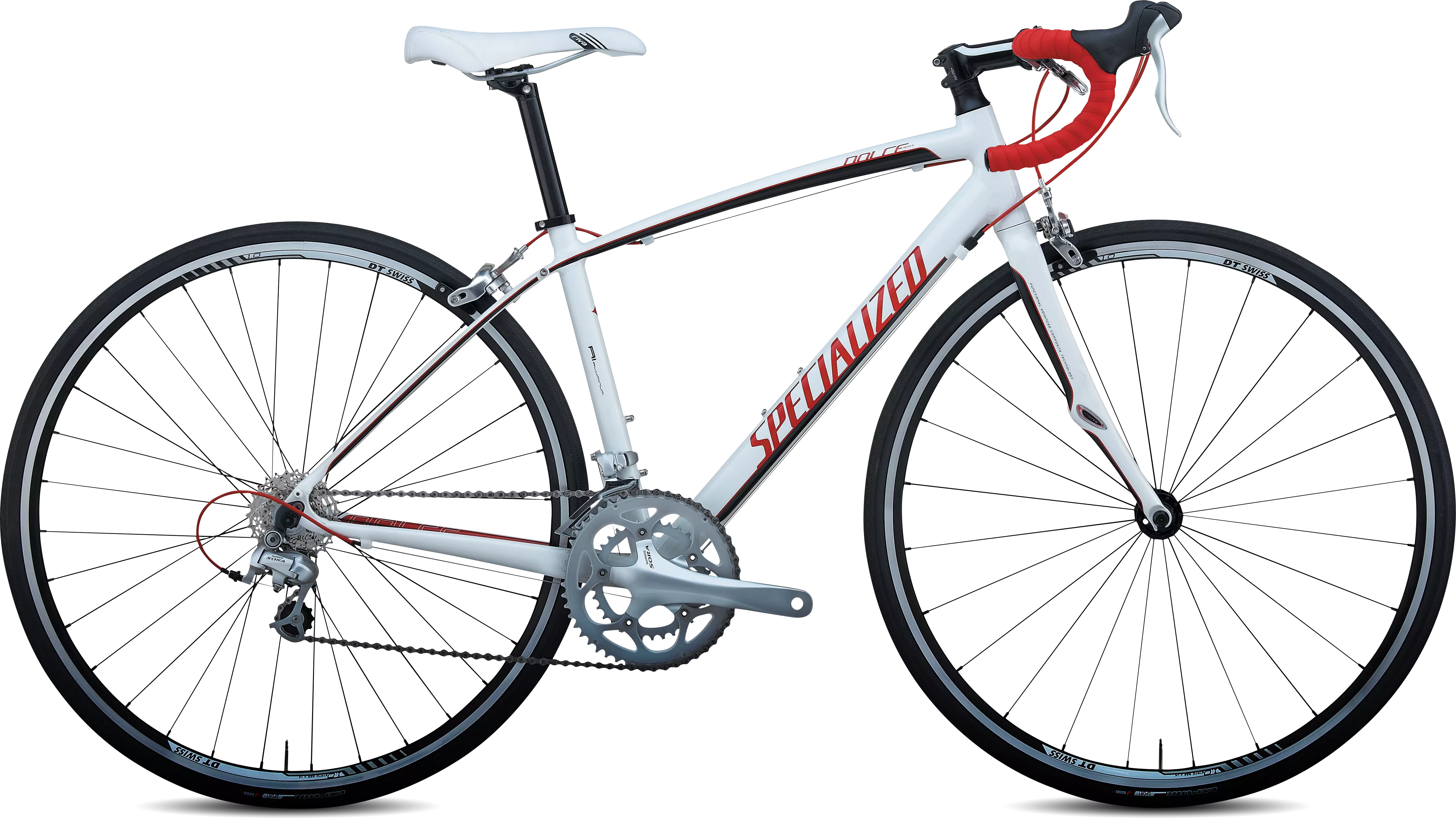 Every key component of the Dolce was specifically selected for the female rider looking to tackle everything from the weekend workout to the upcoming century ride. The Dolce Sport Compact has an A1 alloy frame with women's endurance geometry and Zertz inserts for a responsive, yet forgiving ride. The Shimano Sora drivetrain provides reliable and quiet shifting.