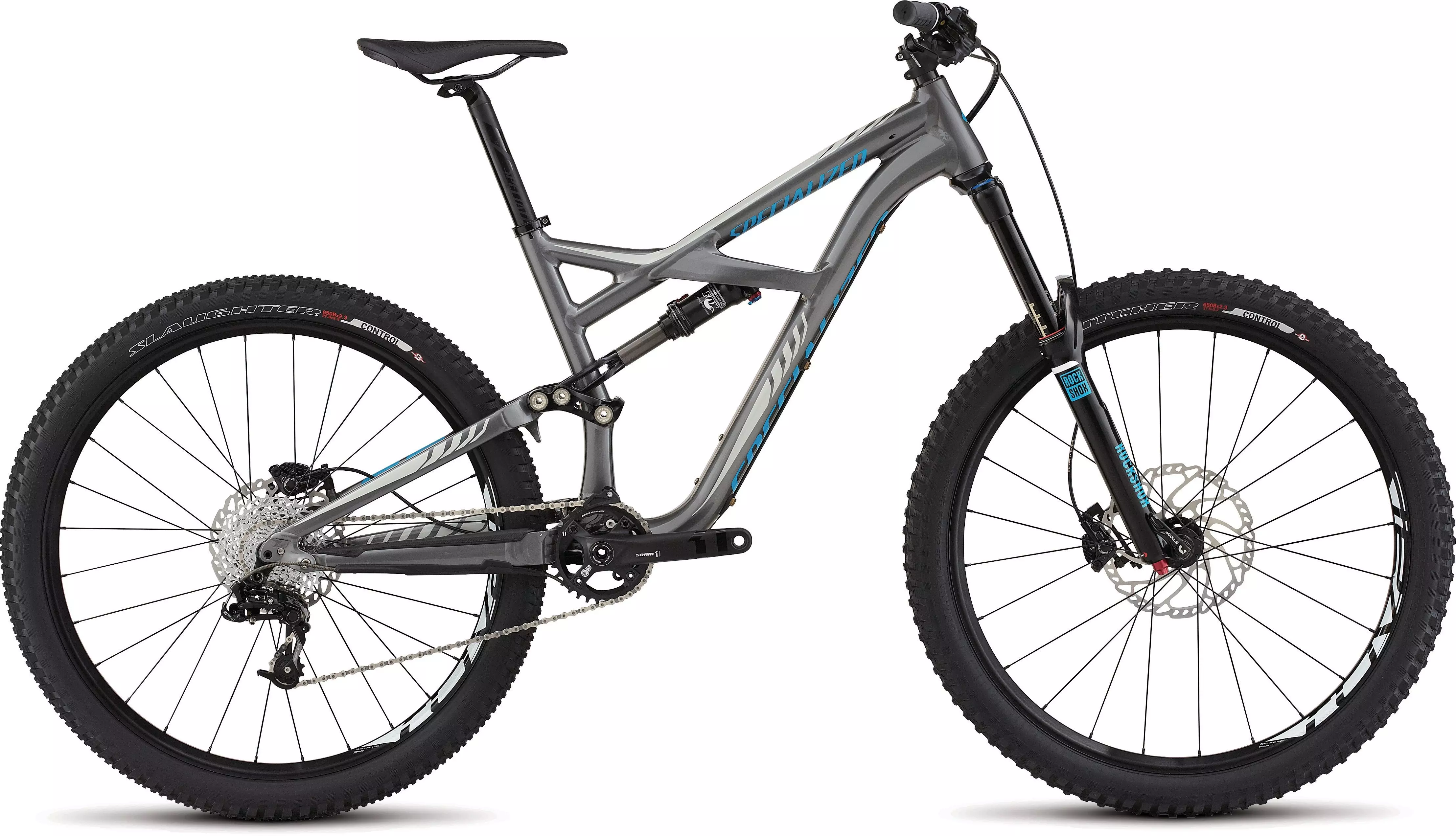 M5 aluminum, 650b geometry, tapered headtube, PF30 BB, ISCG '05 mount, internal Command Post IR routing, 142mm dropouts, sealed cartridge bearing pivots, replaceable derailleur hanger, 165mm travel