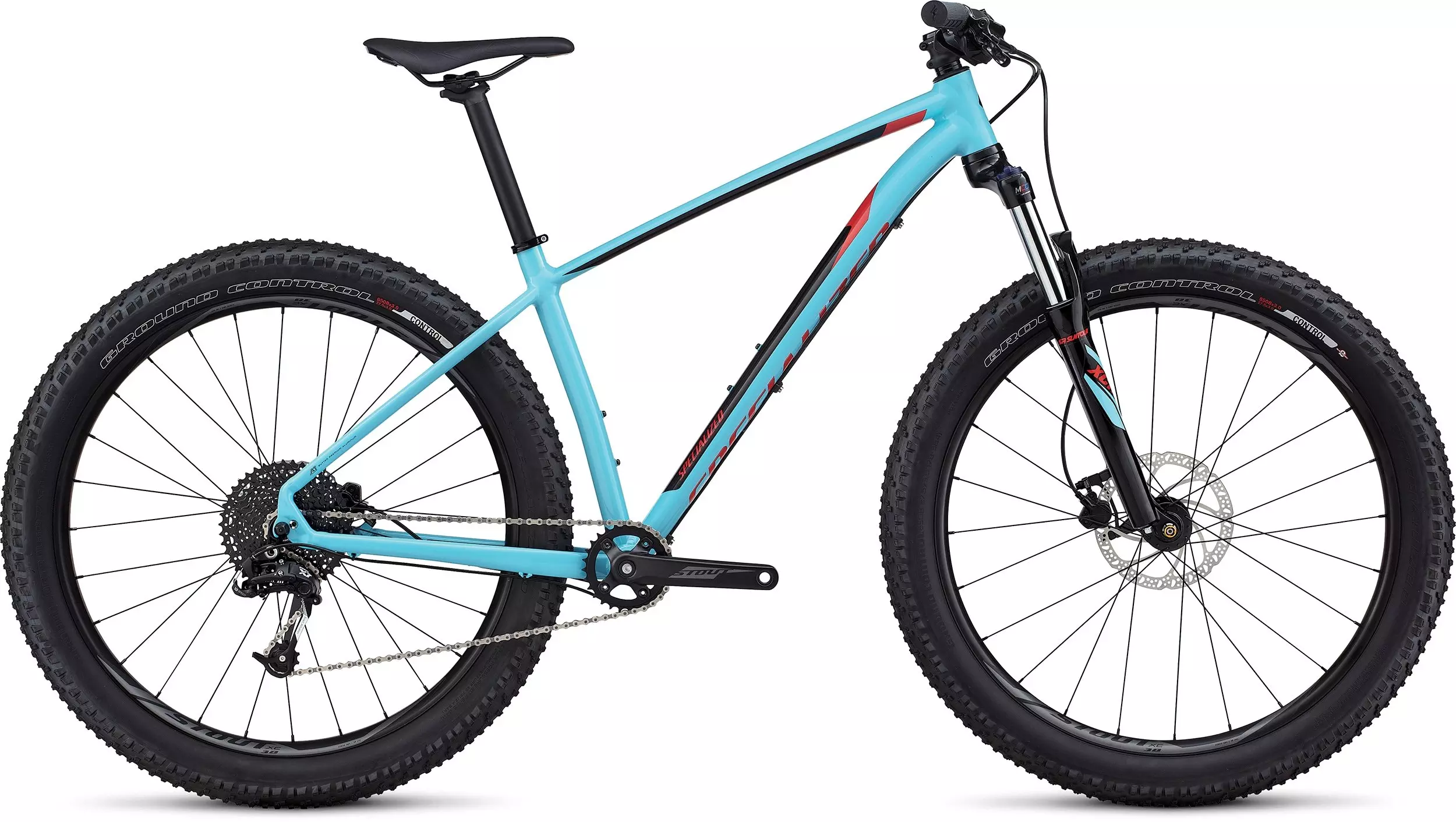 An SR Suntour XCM 27.5+ fork with Multi-Circuit Damping features a stiff 15mm thru-axle and 80/100mm of smooth travel.