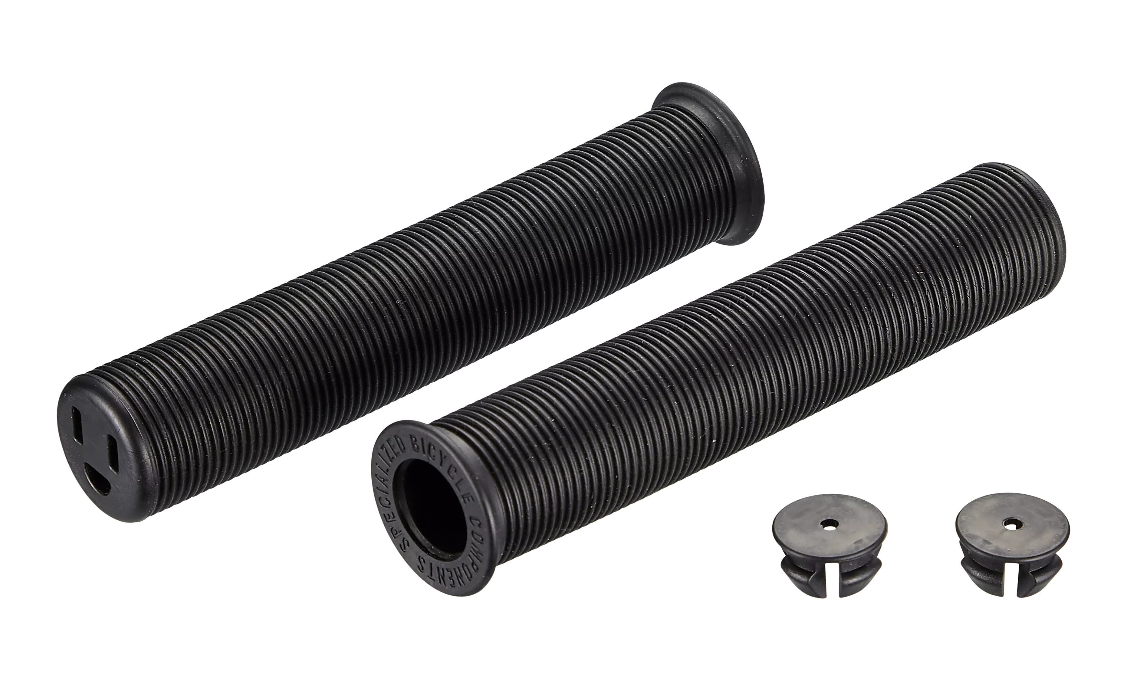 Closed end rubber handlebar grips for Globe bikes with Pluggy logo.