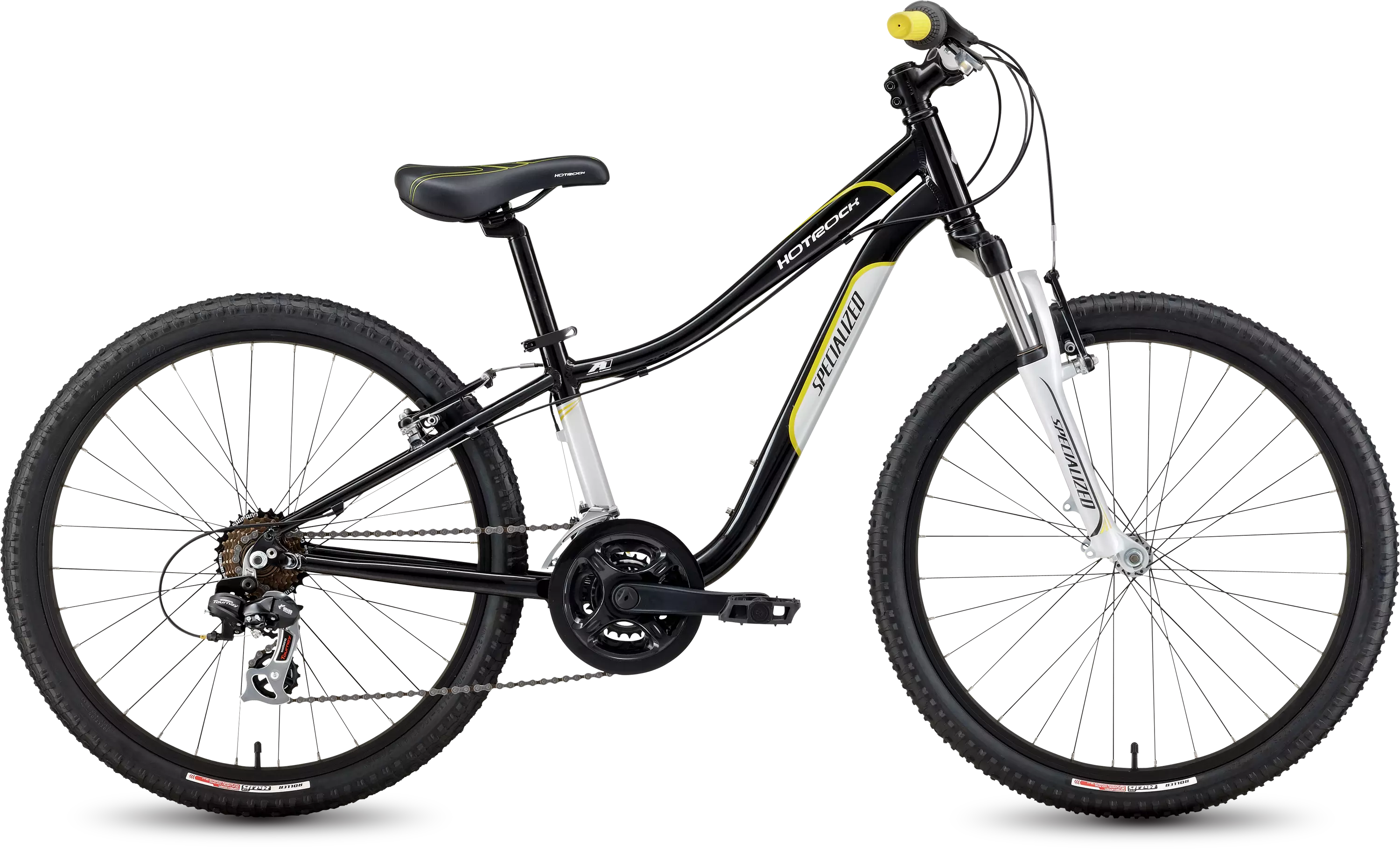 Durable A1 Premium Aluminum frame, a suspension fork with 50mm of travel, and wide range gearing make the Hotrock 24 21-speed trail-ready for big kids.