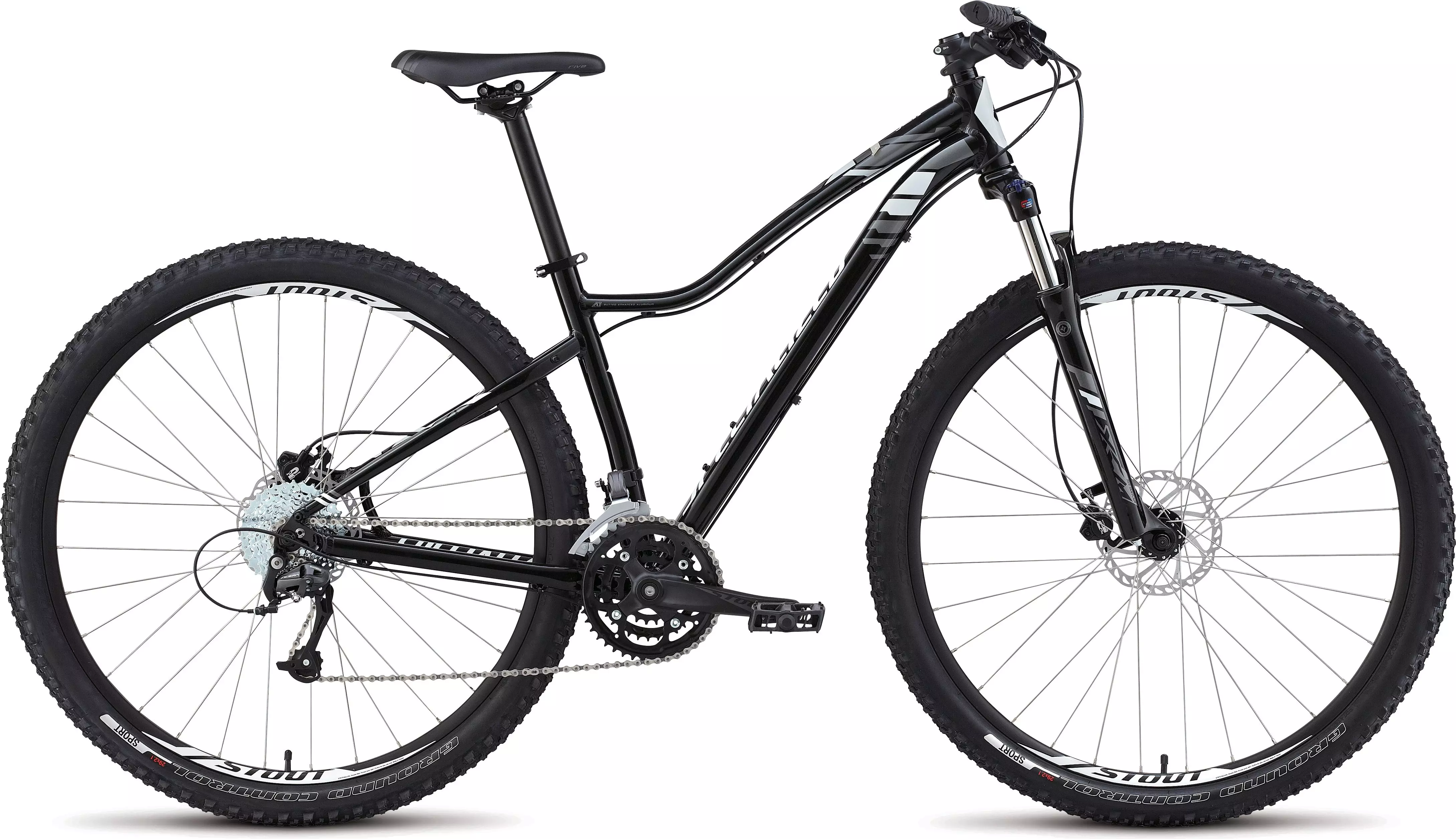 Specialized A1 Premium Aluminum, Women's XC 29er Geometry, women's butted tubesets, forged post-mount 160mm dropouts, replaceable derailleur hanger, kickstand mount