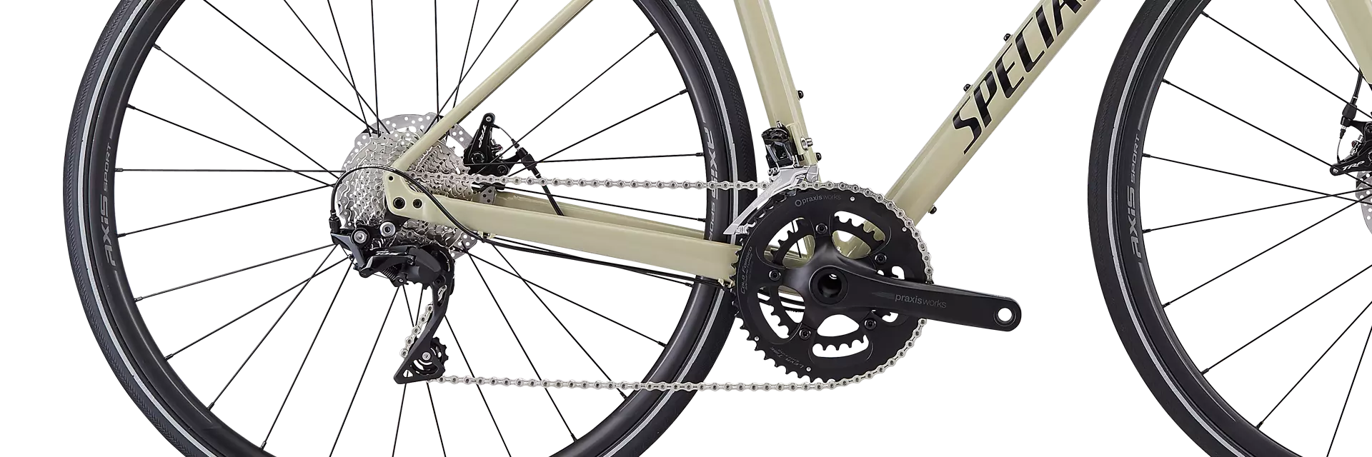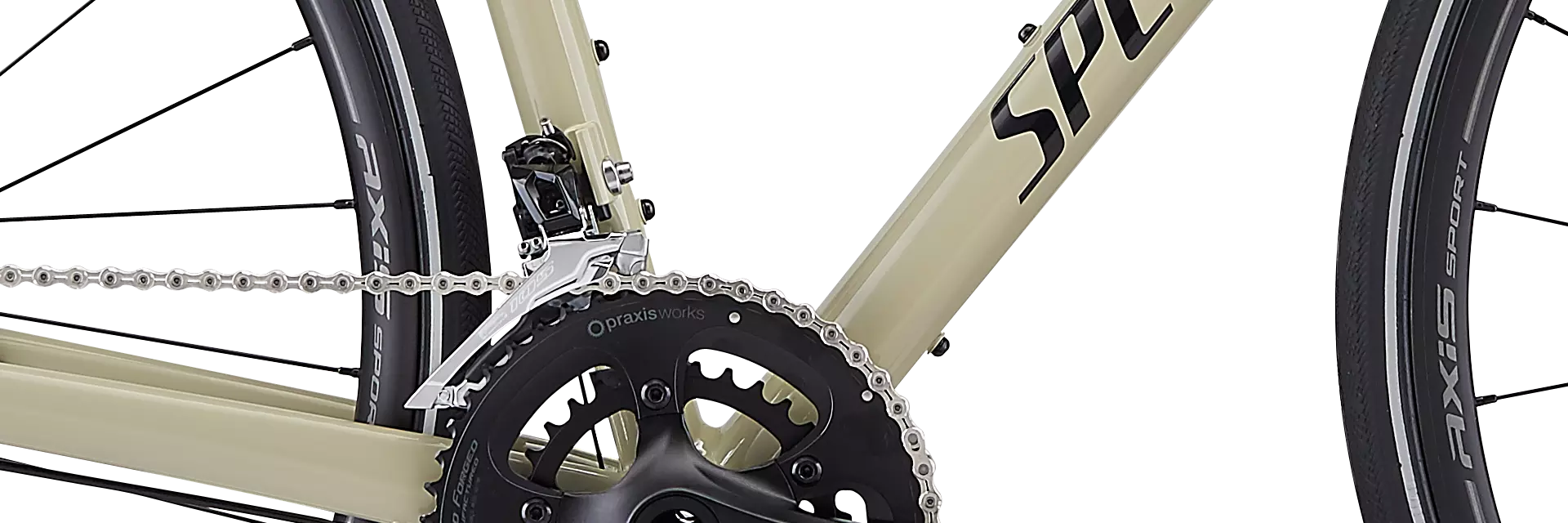 Adding to its multifaceted talents, we topped it off with three water bottle mounts, plus mounts for racks and fenders. For the spec, we wanted to make sure that it shifted crisply and braked smoothly mile after mile, so you'll find a crisp and reliable Shimano 105 groupset, hassle-free Tektro Spyre mechanical disc brakes, and an Axis Sport Disc wheelset.