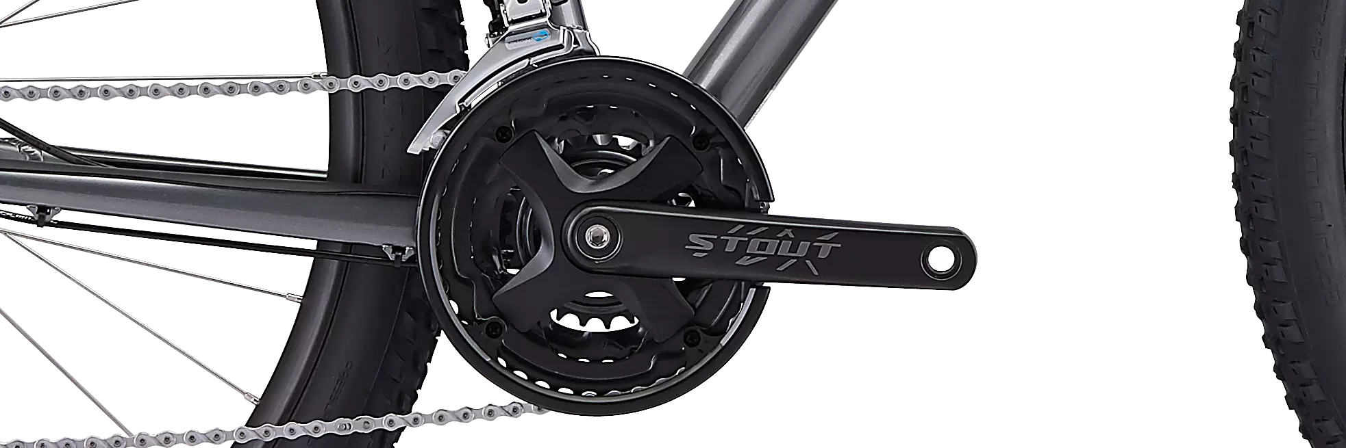 This Rockhopper comes with a build spec that places an emphasis on reliability. This means that it features a full Shimano drivetrain, dependable Shimano hydraulic disc brakes, grippy Ground Control and Fast Trak tires that add traction over any trail, and an SR Suntour XCT 29 fork with our custom Multi-Circuit damping that eliminates the "pogo" feel commonly associated with coil forks.