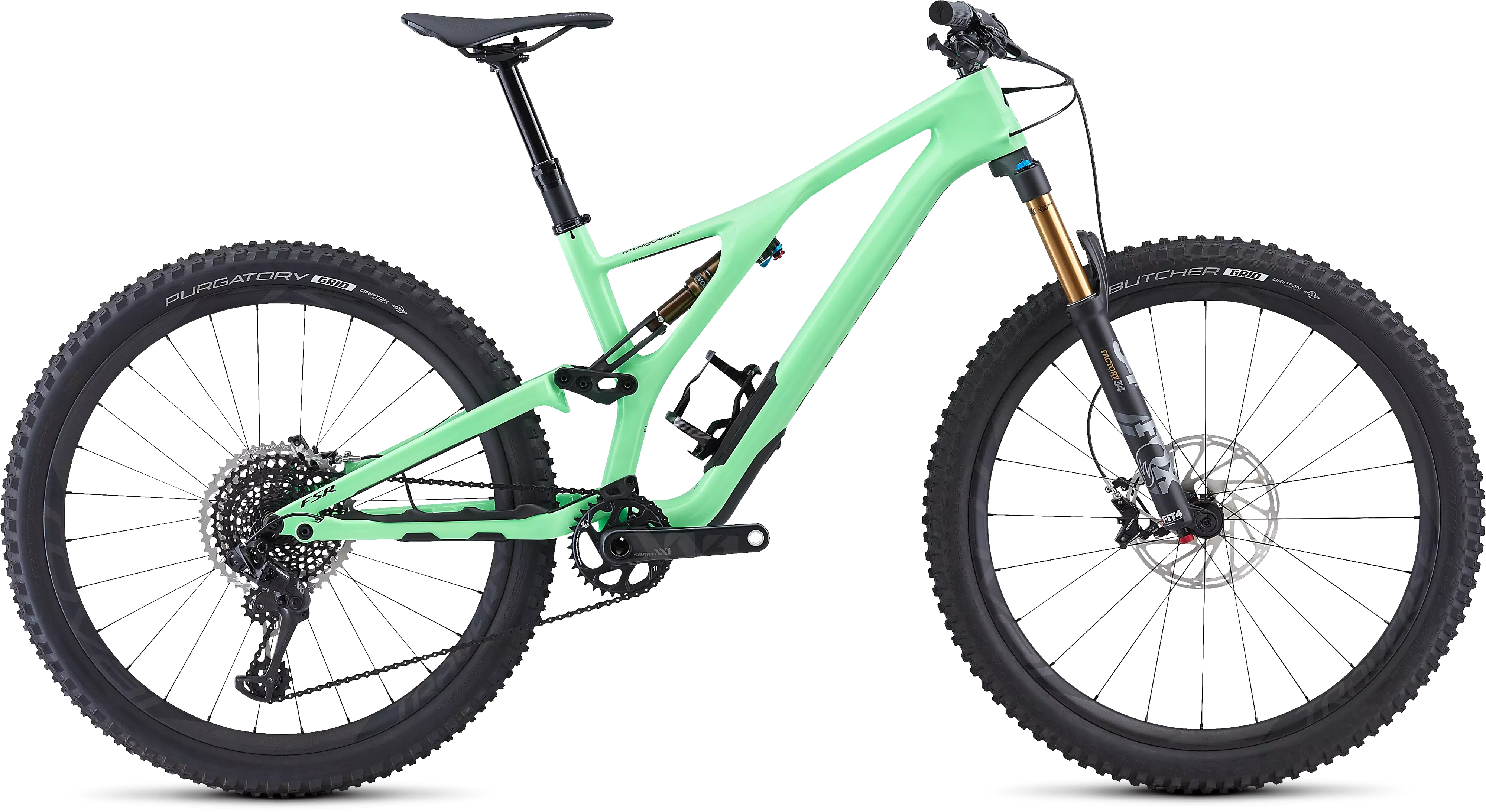 The build features only top-of-the-line parts, like a full SRAM XX1 Eagle drivetrain, SRAM Guide RSC disc brakes, FOX Factory front and rear suspension (130/130mm respectively), and the best carbon wheels money can buy, the Roval Traverse SL 27.5s.