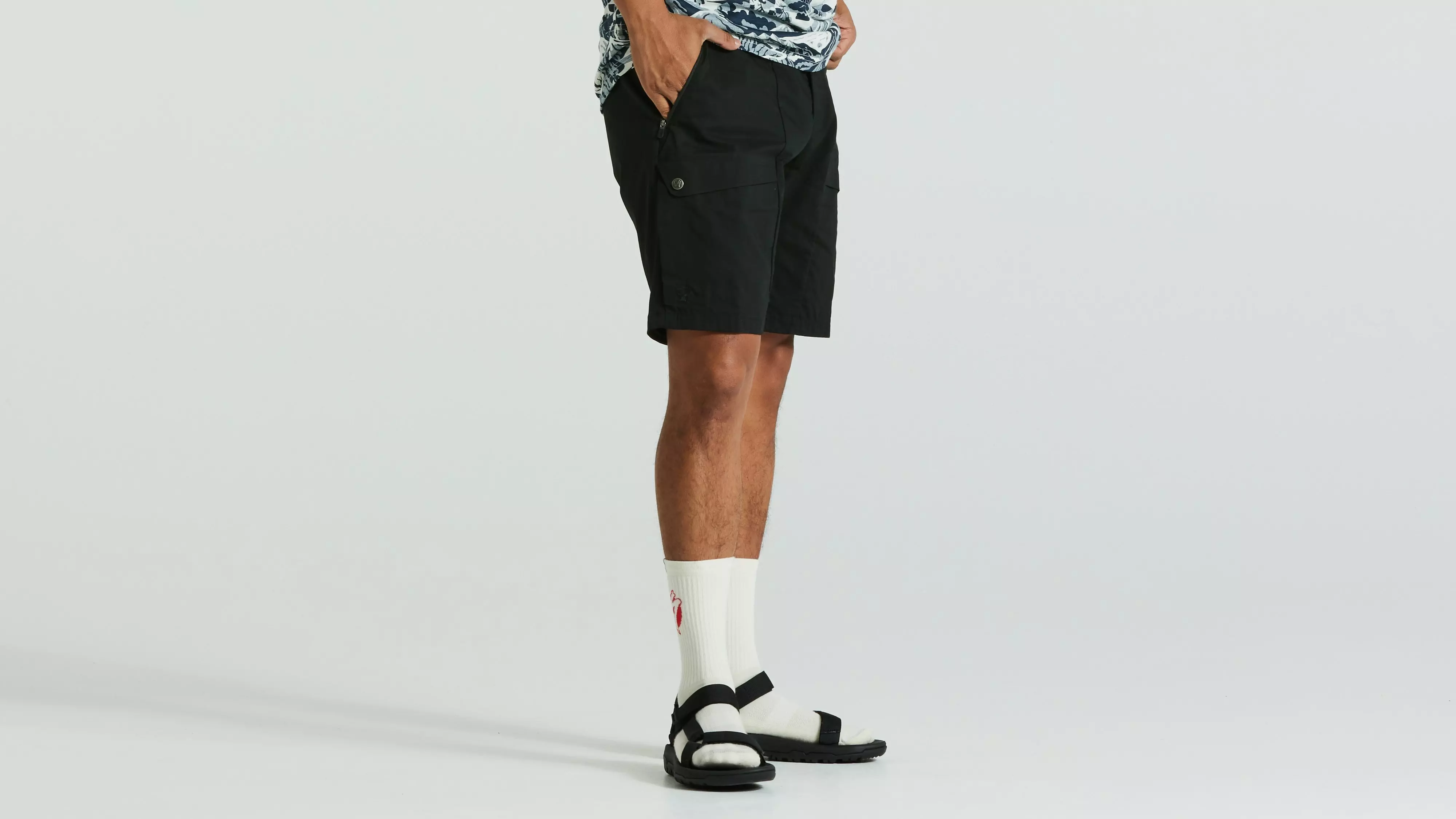 Versatile, comfortable shorts in G-1000 Lite Eco Stretch that can be waxed for enhanced wind- and water-resistance. Optimized for bike riding with a hybrid waist—the built-up waistband has no front seam and is elasticated at the back for more comfort on longer bike rides. The inside of the waistband is faced with mesh for comfort and the effective transport of moisture away from the skin. Secure zippered hand pockets and thigh pockets with snap buttons. Reflective details on inside of hems, fold up the cuffs to expose them for more visibility. Reinforced gusset. Part of the Specialized/Fjällräven series for urban rides and bikepacking adventures.