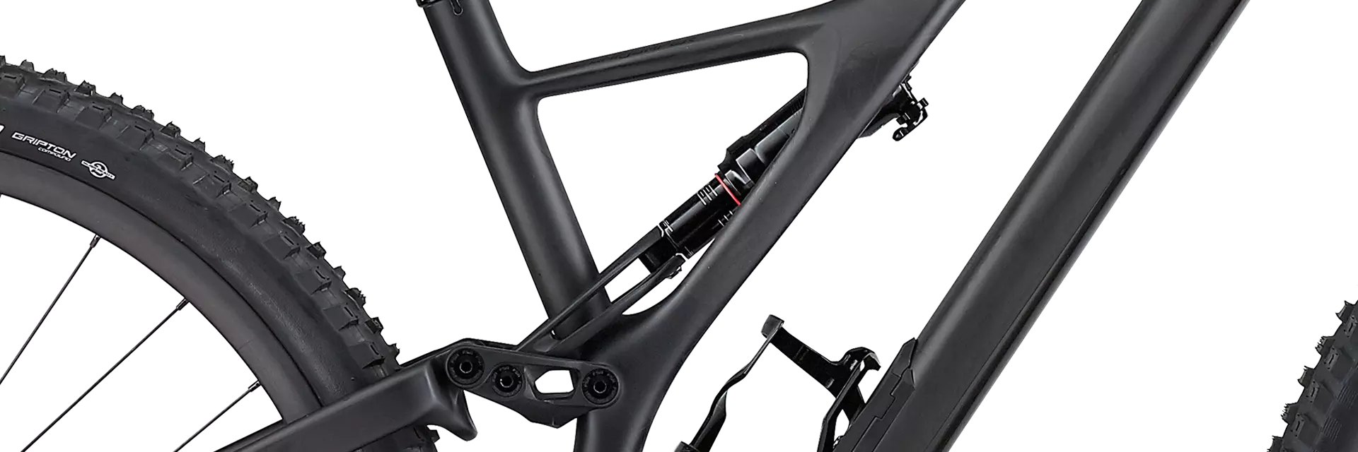 Steps were also taken to make this bike easy to live with. Threaded bottom brackets make a triumphant return, and we made room for up to a 2.6" tire. You're also free to run whatever aftermarket rear shock you want, since we're using standard metric shocks. We revamped the SWAT™ box, too, making it sleeker, lighter, and with more volume. And customization is furthered with a Flip Chip that lets you to dial-in your Stumpy to your riding style. Switch it from High to Low and it drops your bottom bracket 6mm and slackens the head tube by half-a-degree. Little details also jump out to surprise you, like a newly designed ribbed chainstay protector that makes chain slap a thing of the past and nearly silences the drivetrain. Lastly, we seriously couldn't make cable routing any easier on carbon models. Full tubes can be found throughout the carbon frame, so all you have to do is push the cable and it'll come out the other end. No more lazy loop, hidden stashes of magnets, pokey spokes, or pillows to cry in.