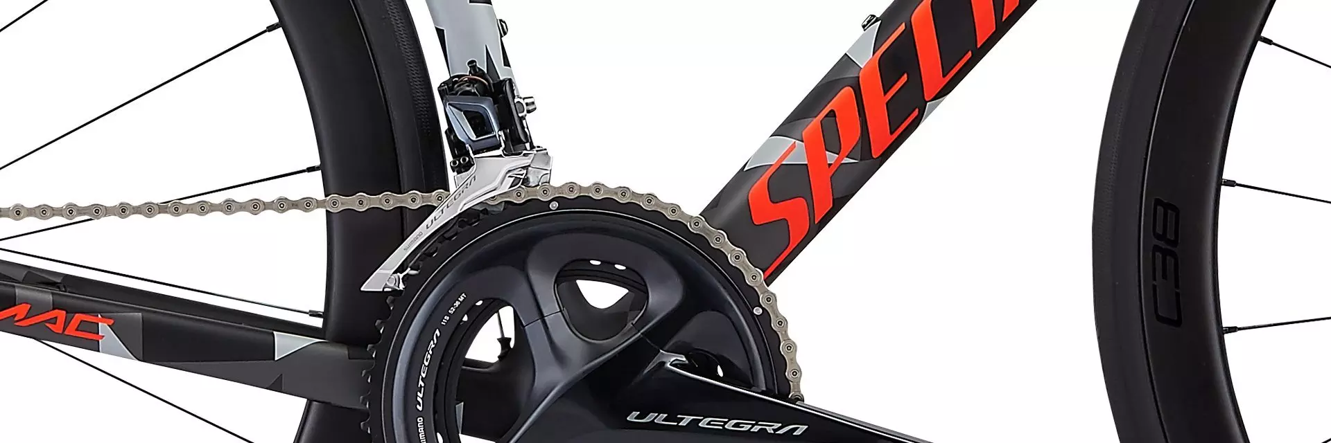 The build spec on this Tarmac Disc is value-packed, featuring Shimano Ultegra mechanical shifting, Shimano hydraulic disc brakes, a Roval C 38 Disc carbon fiber wheelset.