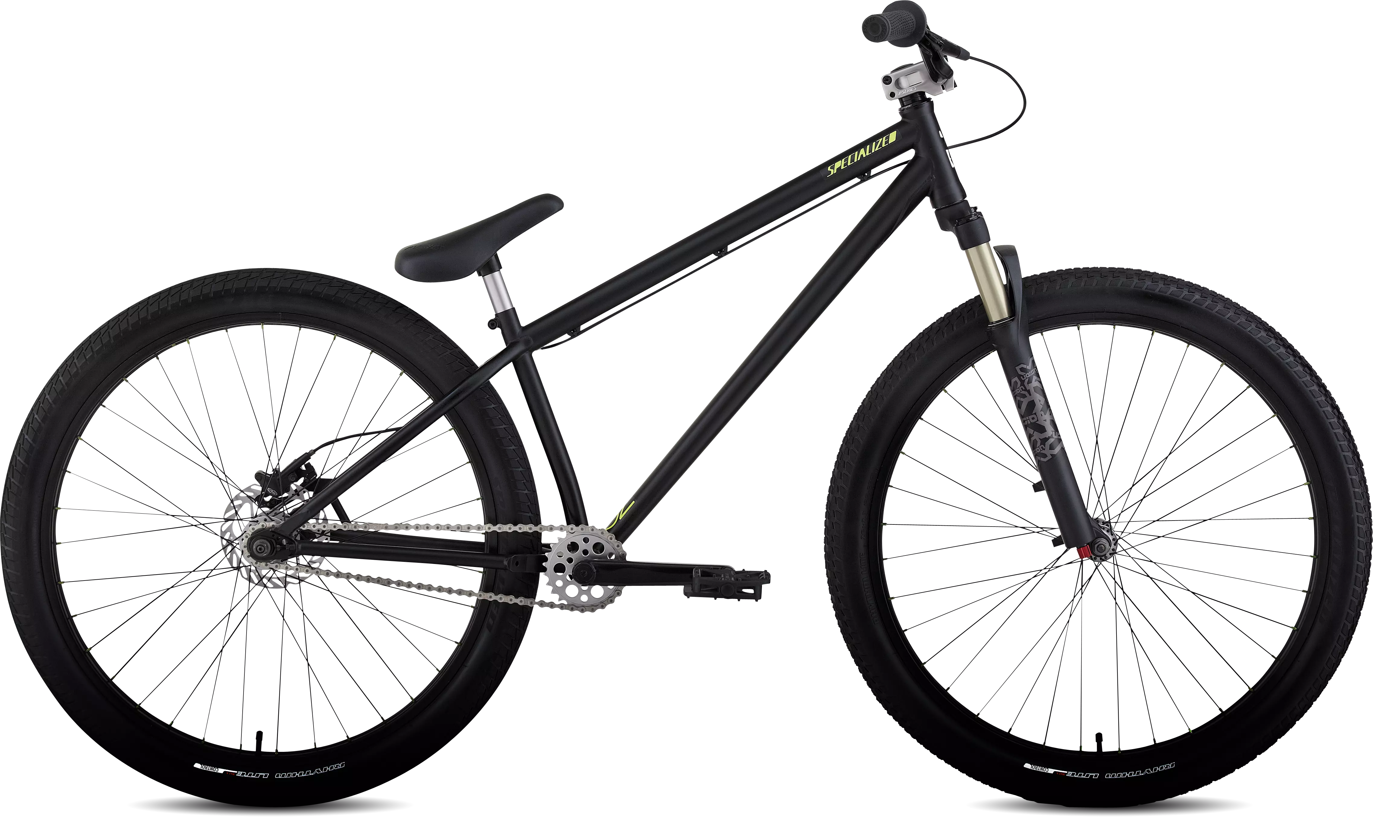 High-volume, impact-absorbing Specialized tires give you the versatility to ride dirt, park or street