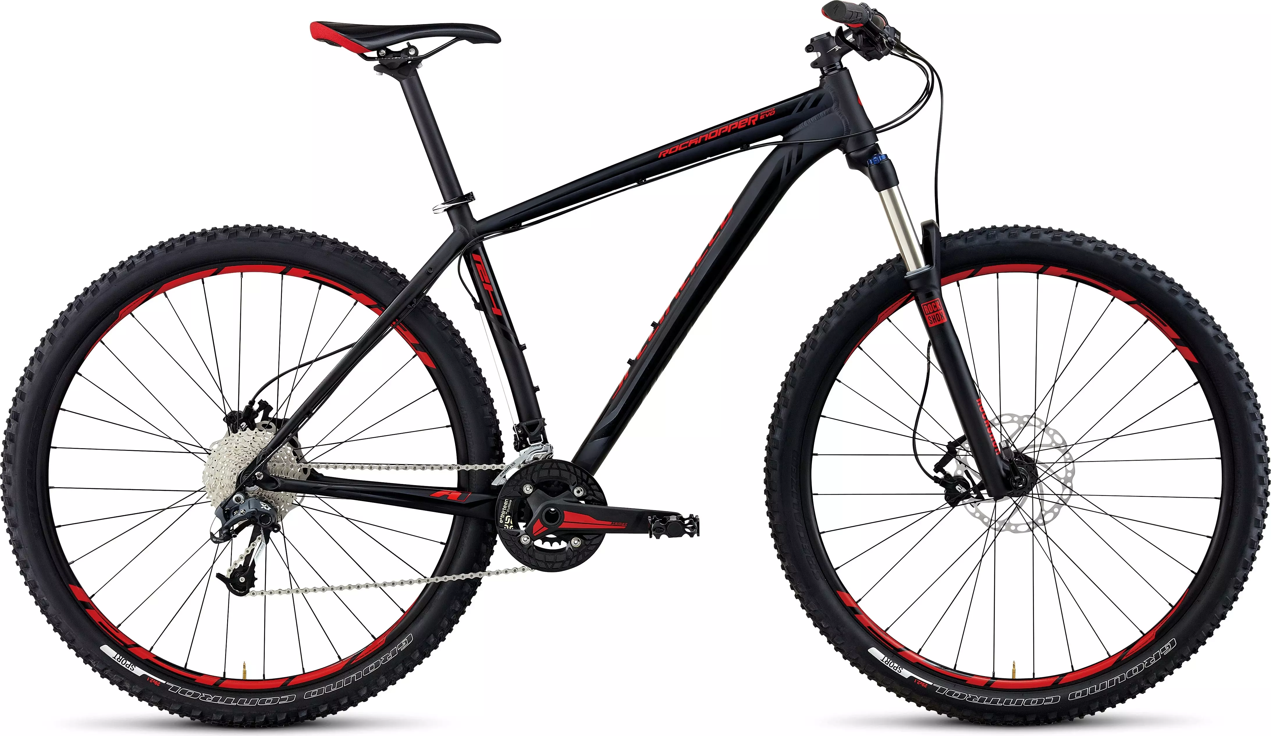 The EVO model uses the same fully butted A1 Premium frame as other Rockhopper models, but delivers a more aggressive trail experience. The 120mm-travel RockShox fork relaxes the geometry for more stable handling, and a bash guard improves chain retention and drive train durability