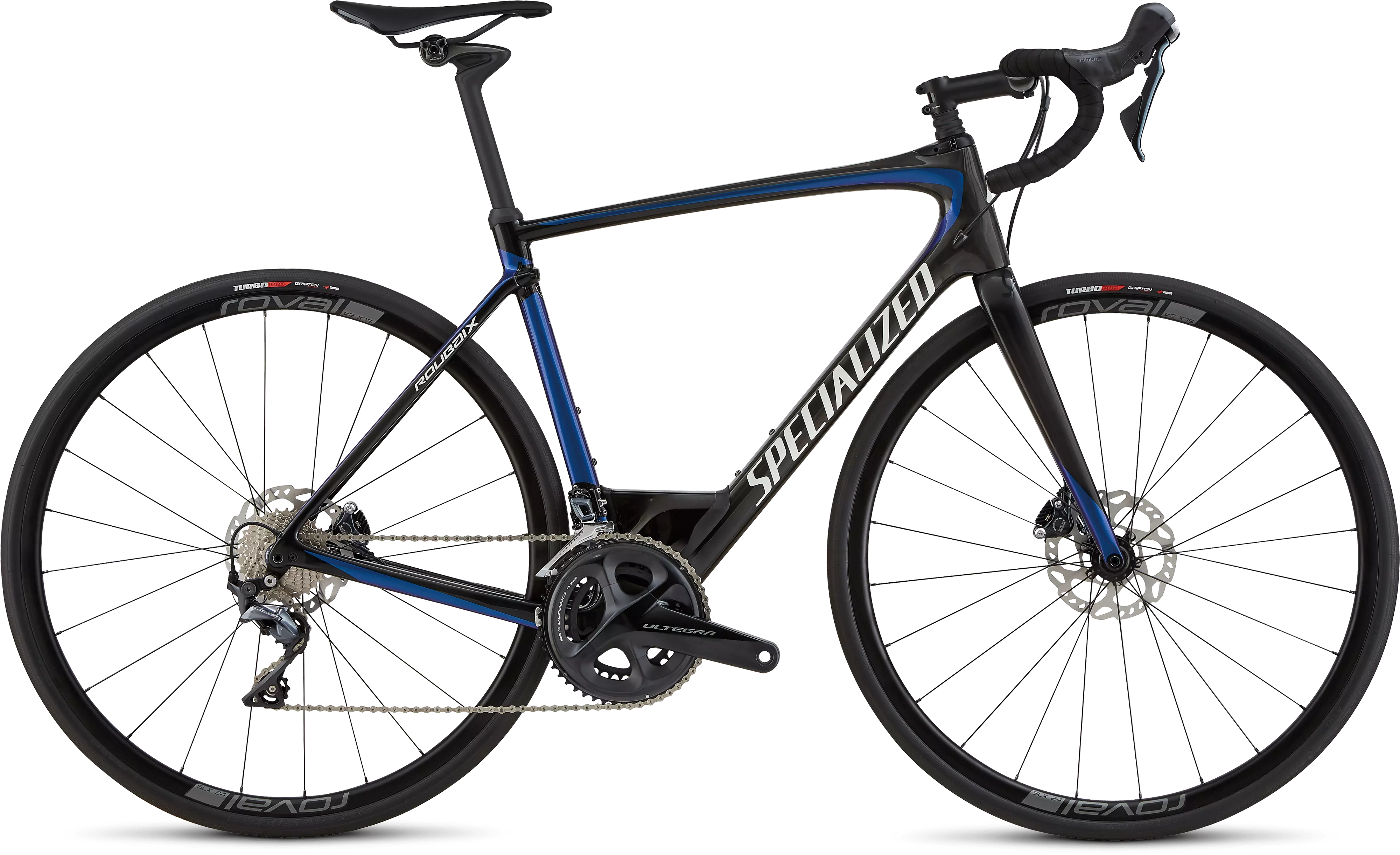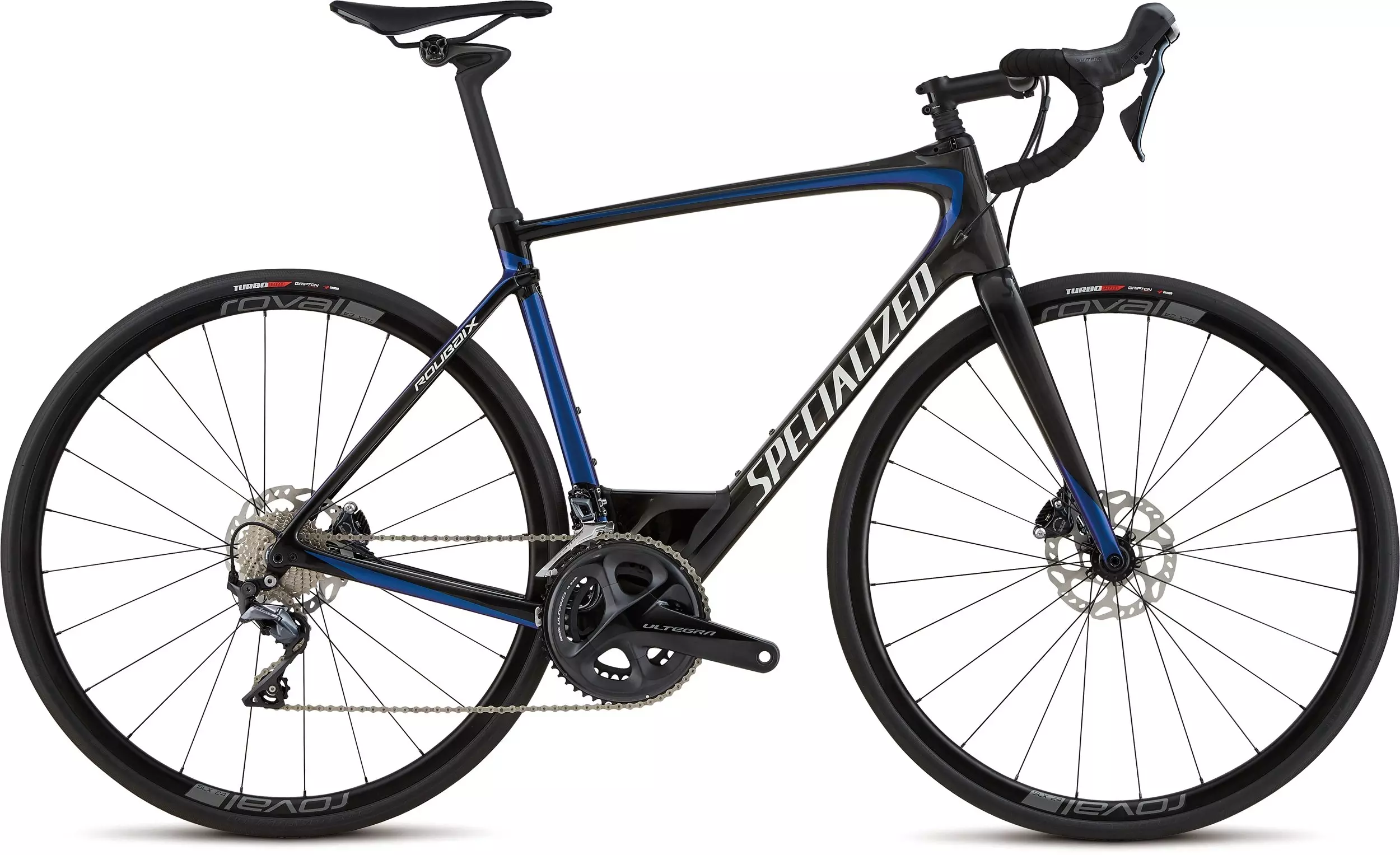 For this Roubaix, we spec'd Shimano's new mechanical Ultegra 8000 to handle shifting duties, with Ultegra 8020 hydraulic disc brakes to match. We then topped it off with lightweight, alloy Roval SLX 24 disc wheels laced to DT Swiss 350 hubs to keep you rolling smoothly.